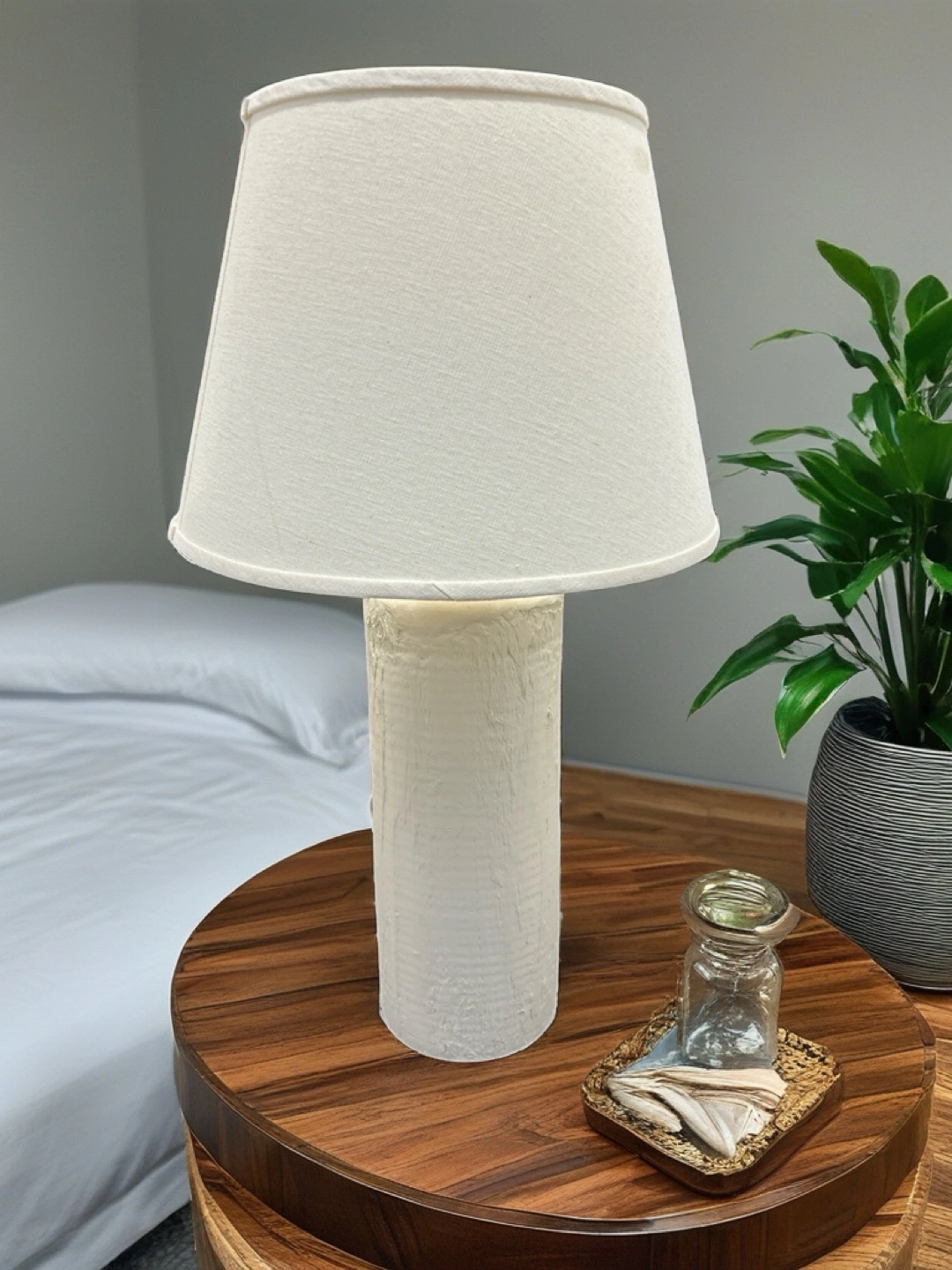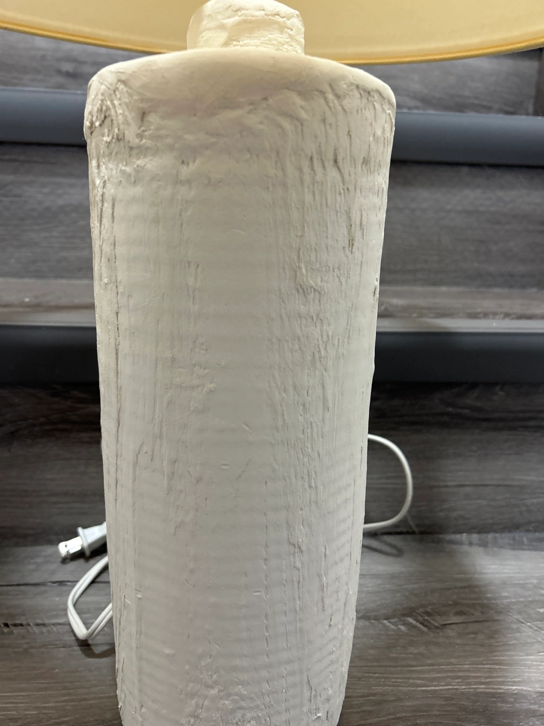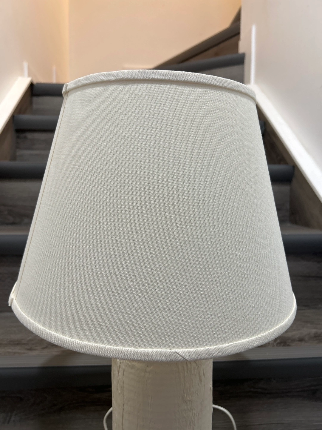 Selling a cute table lamp! It features a textured white base and a classic lampshade. It would look great in any room!