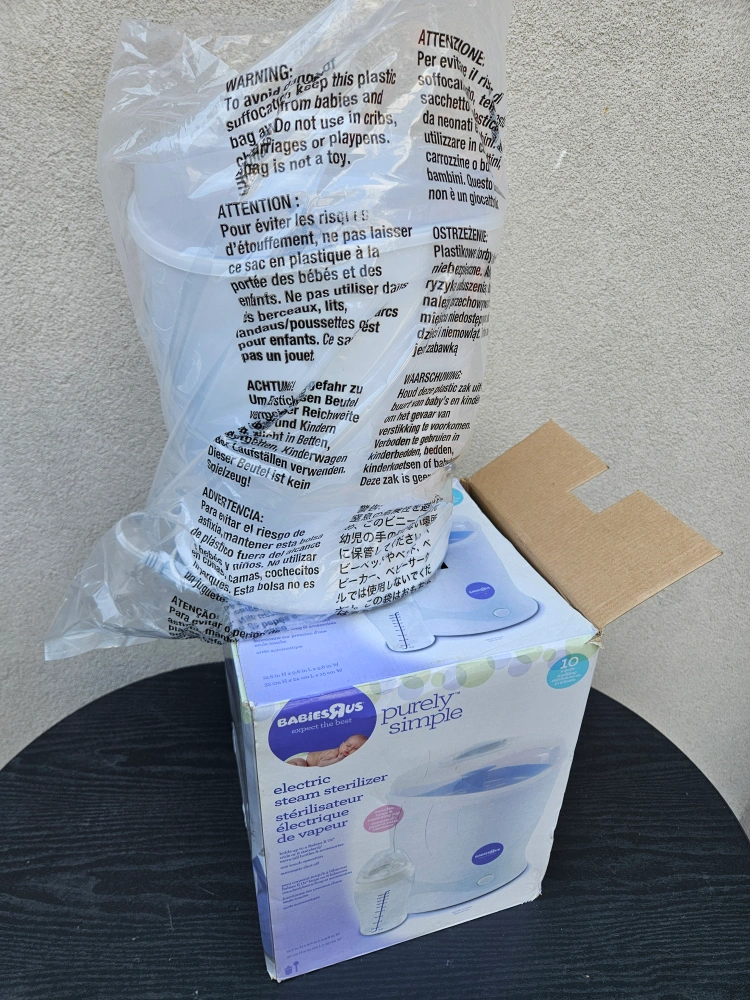 Selling a like-new Babies R Us Purely Simple electric steam sterilizer. It's in excellent condition and comes with the box. Perfect for sterilizing baby bottles and accessories quickly and easily!