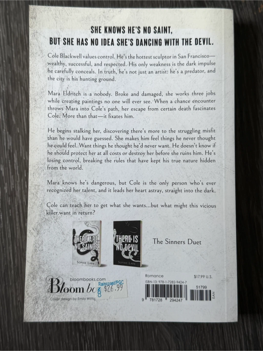 🐍 There Are No Saints – Sophie Lark (The Sinners Duet, Book One) ✨ Dark, dangerous, and utterly addictive – a twisted romance you won’t be able to put down. Storyline: Cole Blackwell is San Francisco’s most celebrated sculptor—wealthy, powerful, and respected. But beneath the surface, he hides a darker truth: he’s a predator, and the city is his hunting ground. When struggling artist Mara Eldritch crosses his path, she becomes his obsession. He stalks her, protects her, and threatens to destroy her—blurring the line between love and ruin. 📖 Condition: Great – gently read, like new 📍 Location: Cranston 💲 Price: $10 Perfect for fans of dark romance, obsession, and morally grey antiheroes.