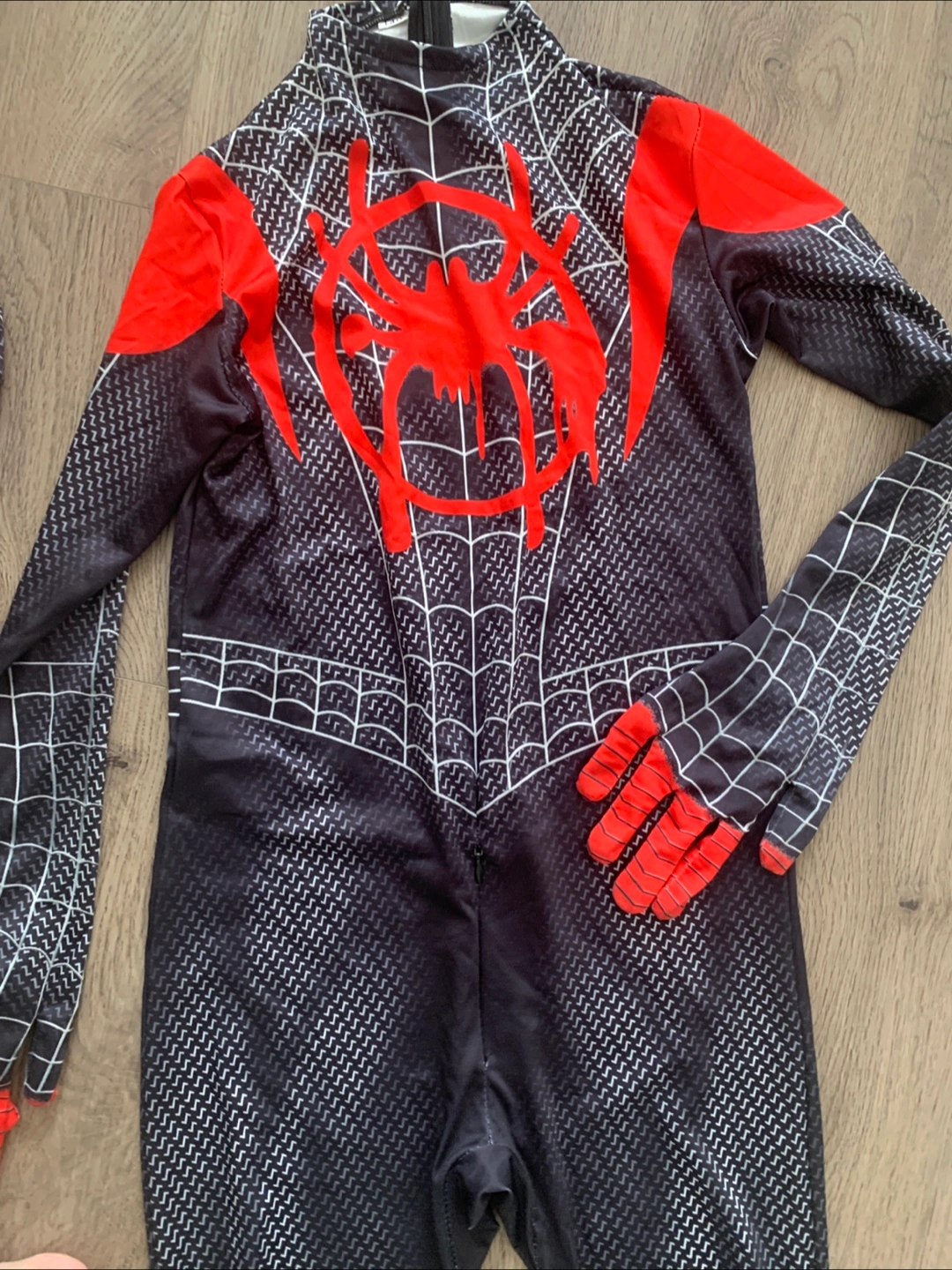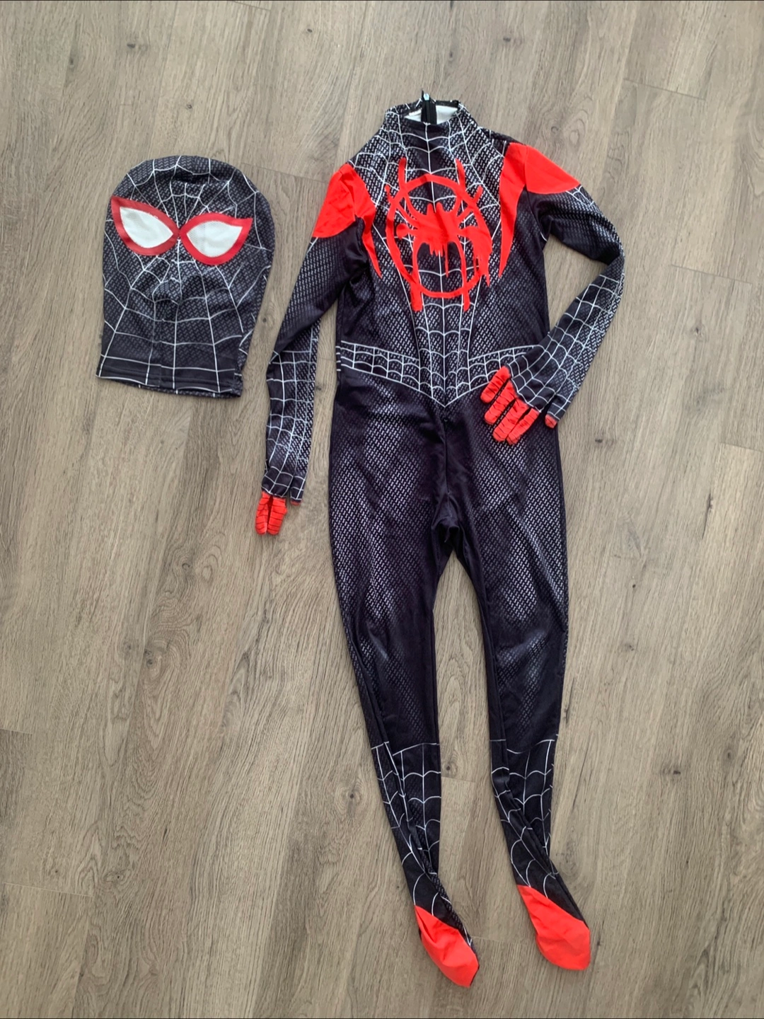 Selling a Miles Morales Spiderman costume! It's in great shape and ready for a new superhero in training! The costume includes the mask and full body suit.