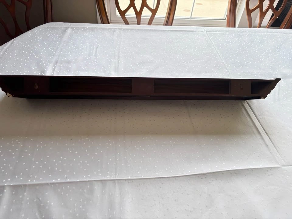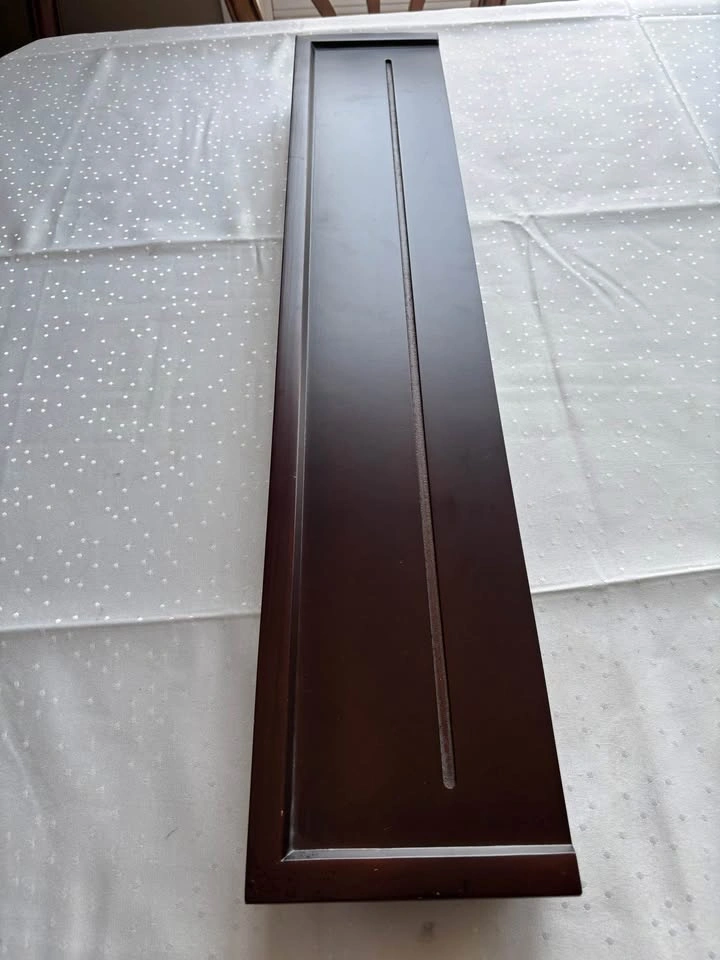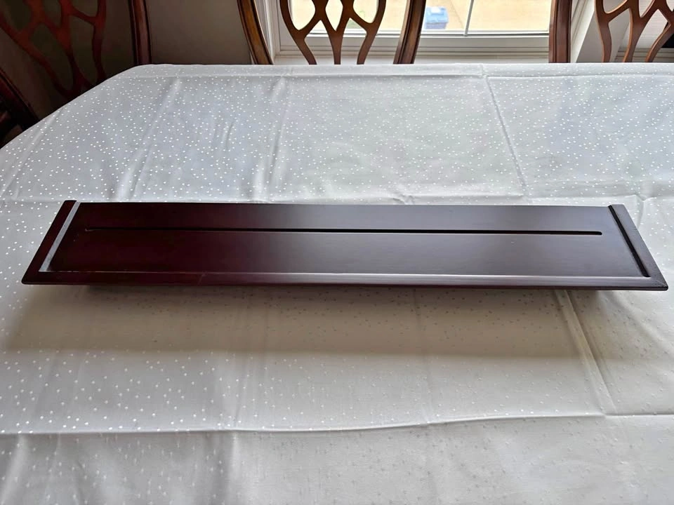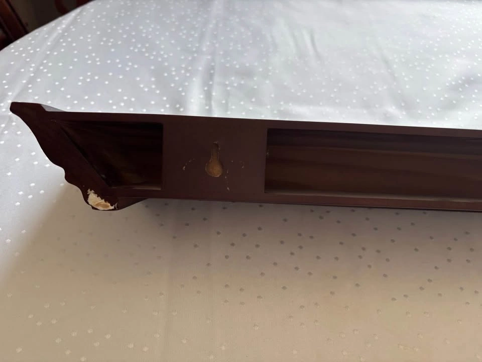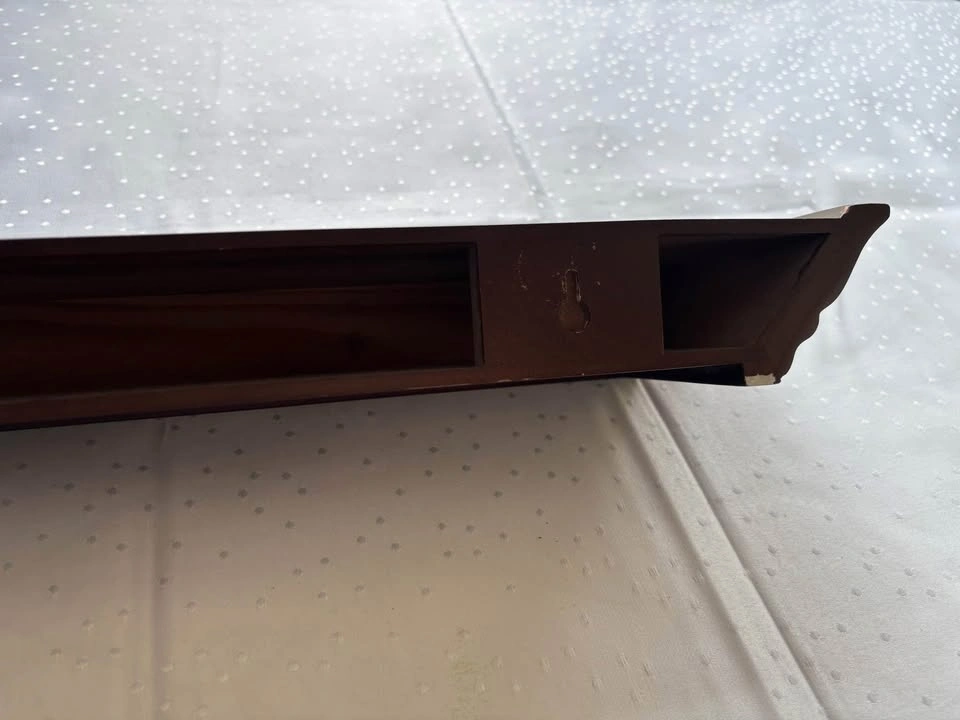 Beautiful wood shelf. Has 2 minor scratches on the back side that you can’t see when it’s on the wall. Size: 32x6x3