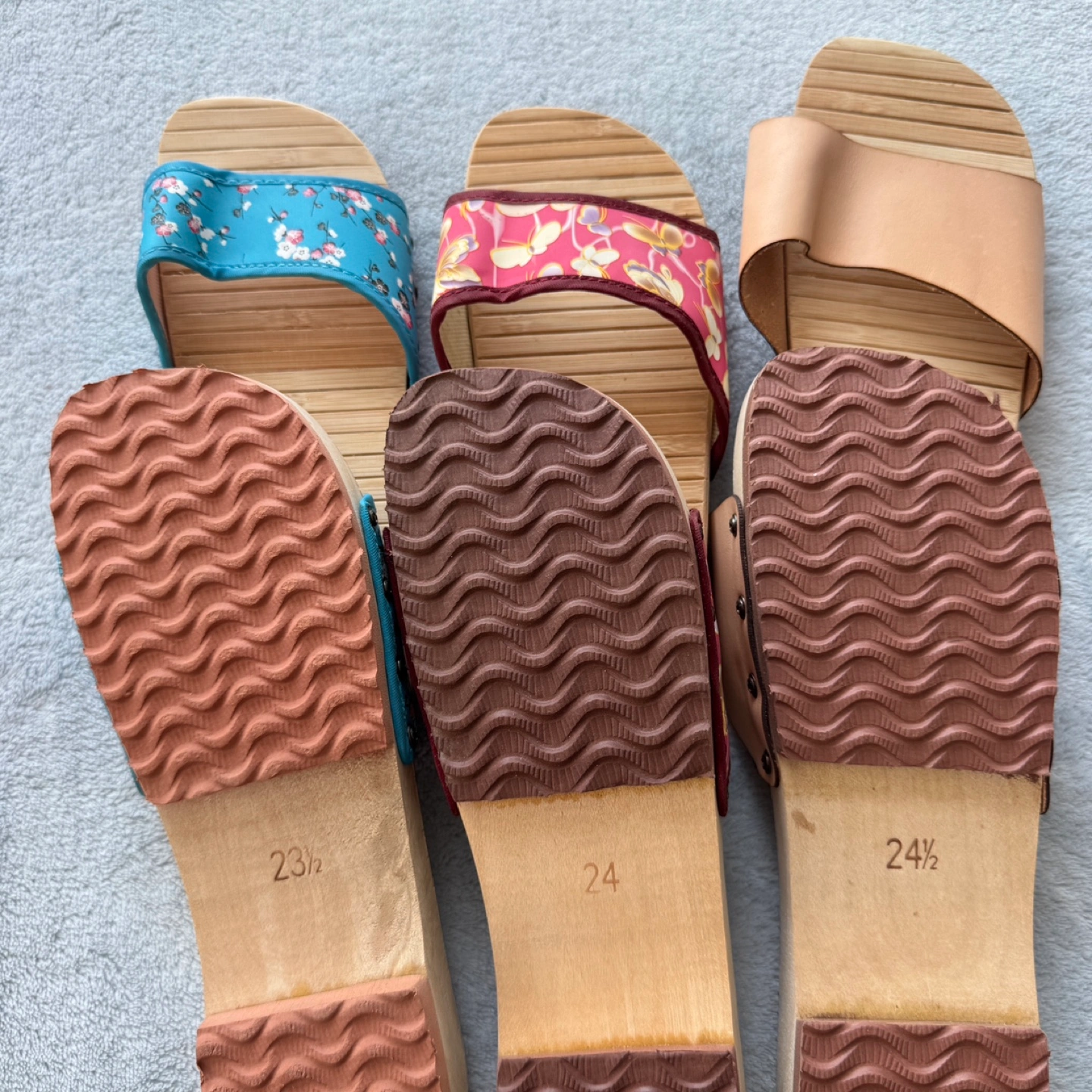 Selling three pairs of wooden sandals! New - One pair is size 23.5 - One pair is size 24 - One pair is size 24.5