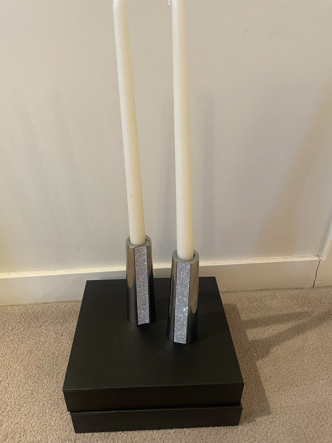 These candle holders are in great shape and feature a stylish rhinestone detail. They add a touch of sparkle to any room.