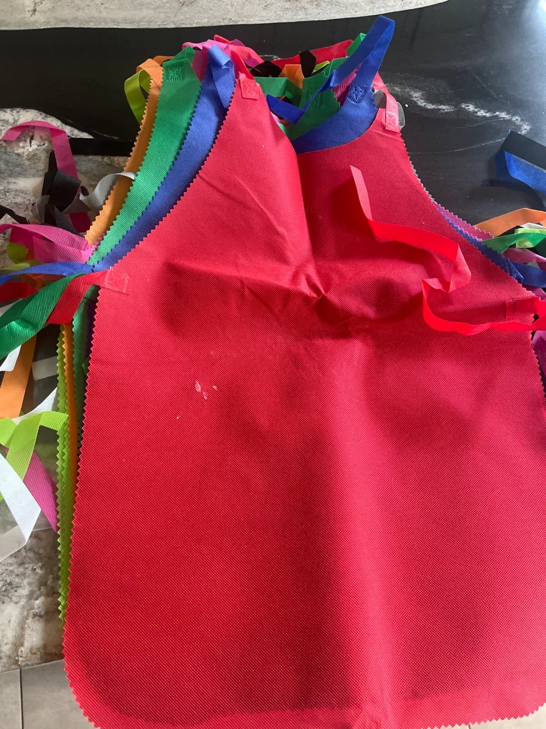 Selling a bunch of reusable aprons in assorted colours. They are approximately 22 inches long. Perfect for crafts or cooking! Just over a dozen Great for birthday party !! $20 for all of them. Pick up keele and Bloor