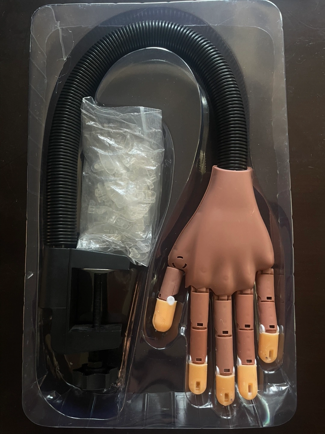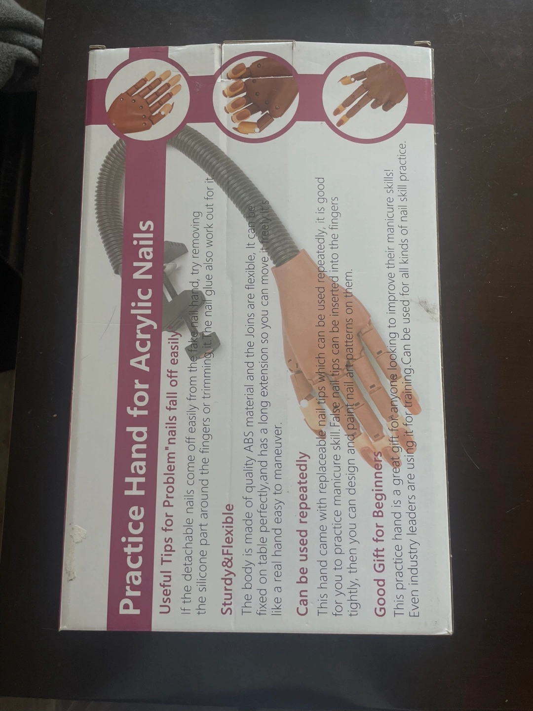 This nail practice hand is designed for manicure skills learning. It features a flexible, sturdy body and comes with replaceable nail tips. It's a great tool for anyone looking to improve their manicure skills!