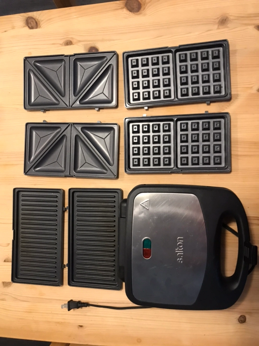 Selling a Salton sandwich and waffle maker! It comes with 3 pairs of interchangeable plates. Additional details on Salton website: https://www.salton.com/products/3-in-1-grill-sandwich-waffle-maker?srsltid=AfmBOoqv4yf5mRsexPjGYnoDOfiKXpIh46Sxxk0IKcvP96DyhNKZp42P