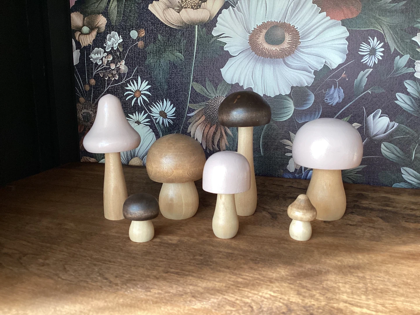 Adorable sets of 7 hand painted and stained mushrooms (by me). A touch of nature decor item for the holidays or anytime of year for your plant shelf, a nursery, or a whimsical touch anywhere in your home. Ranging in height from 1.25” to 4”. Pictured is the Light Pink Set. See my other listings for more colour options. $30 each set of 7 (as pictured). CASH ONLY. Pick up only near Parliament and Bloor.