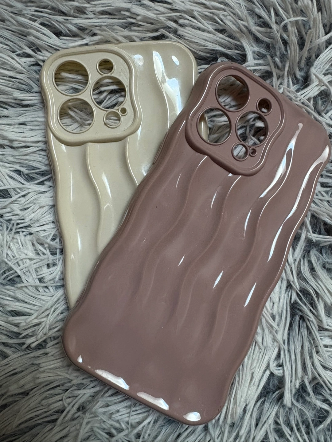 Selling two iPhone cases, one in beige and one in brown. They have a unique wavy design!