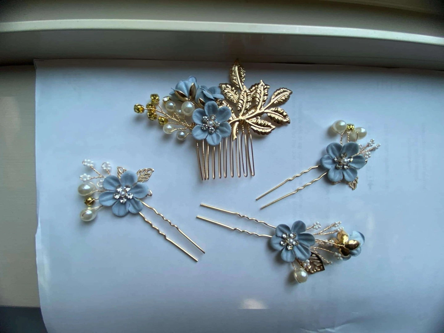 Brand new 4pcs a set of light blue flower Hair Comb, I bought too many packs for my wedding and didn't end up using these. 1 set for $12; 5 sets for $50 altogether. Pickup from Trinity Western University in Langley or near Abbotsford's Canadian Superstore. Accept cash only.