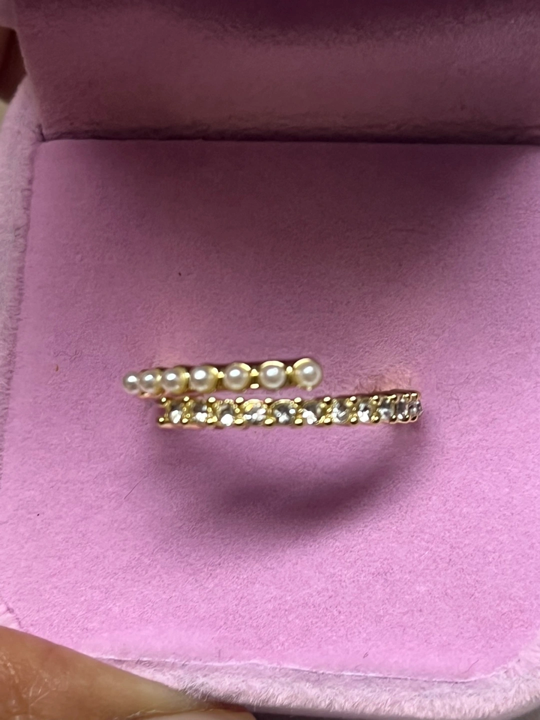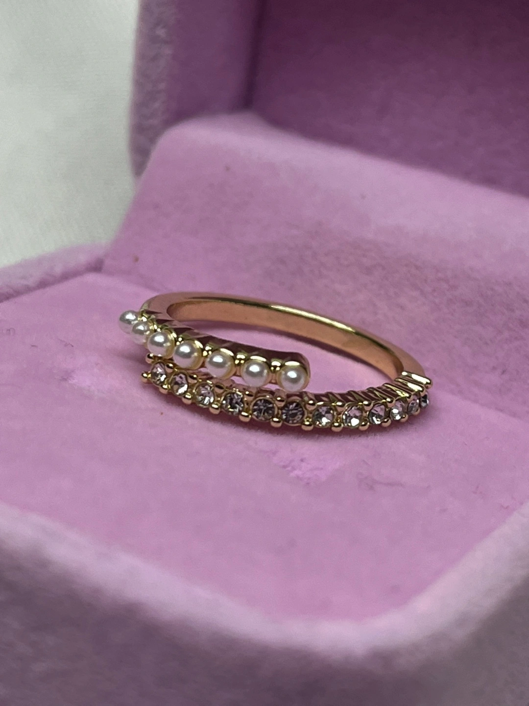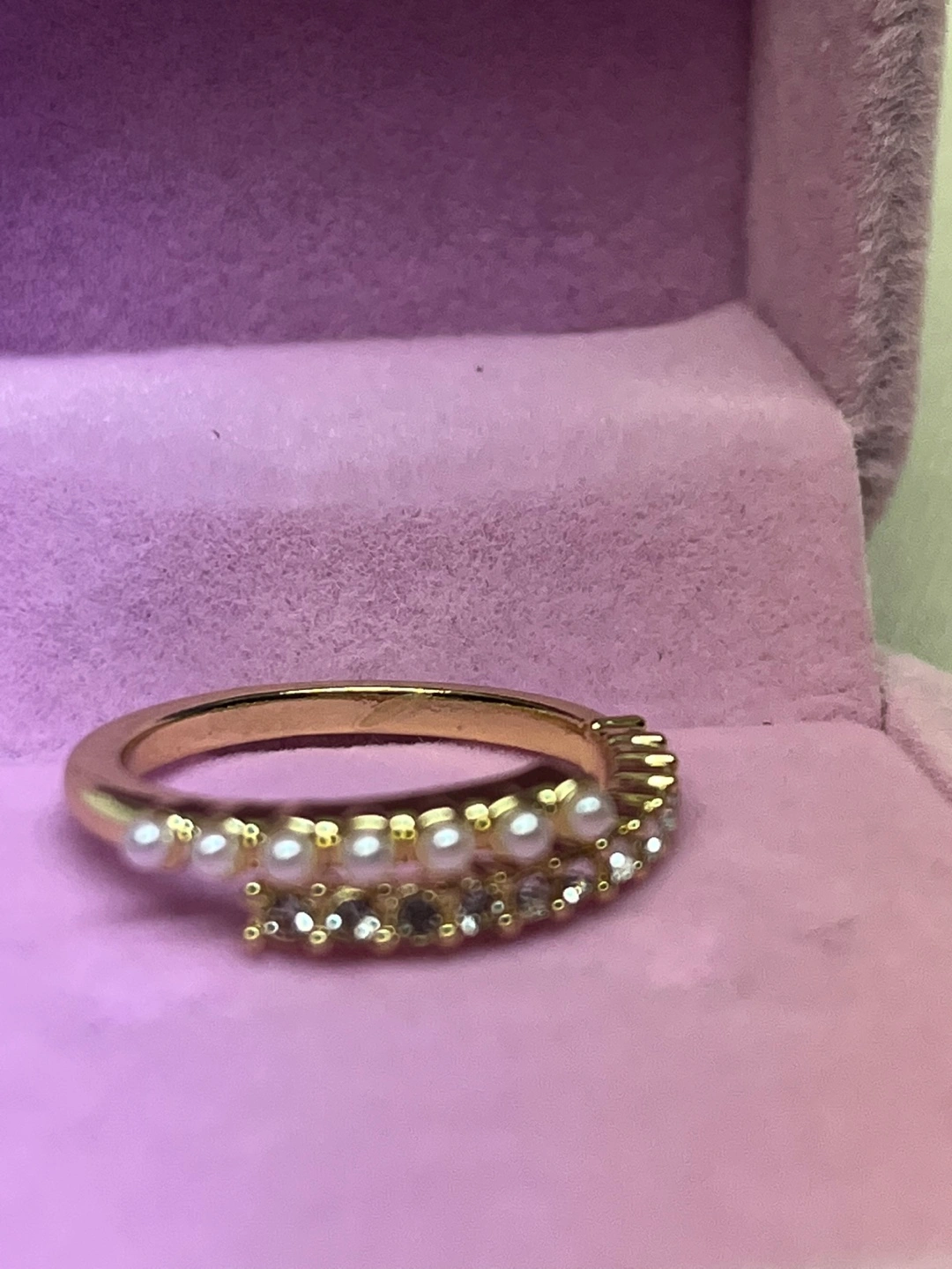 Very delicate 18k gold plated ring with pearls and rhinestones Perfect for daily wear. Size 7 Hypoallergenic, nickel free. Colour will not change Please check my other listings for more variety π Pick up and shipping available No delivery Shipping is available for extra $5