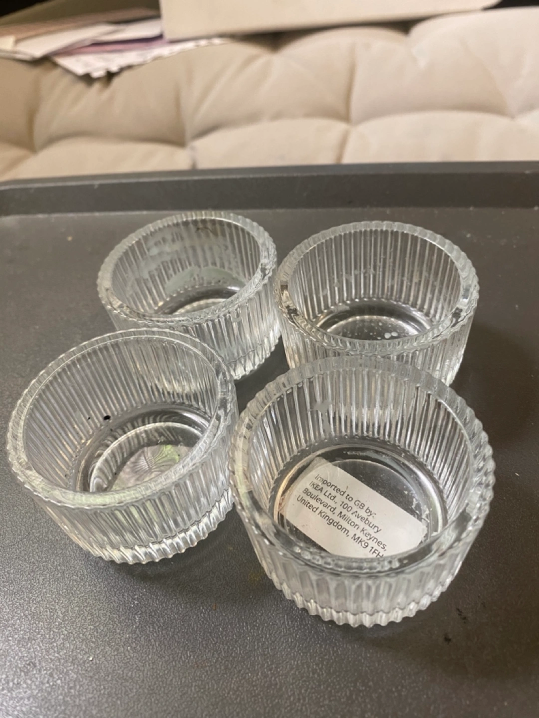 Selling a set of four clear glass candle from IKEA. They're perfect for They are in great condition and ready for a new home!