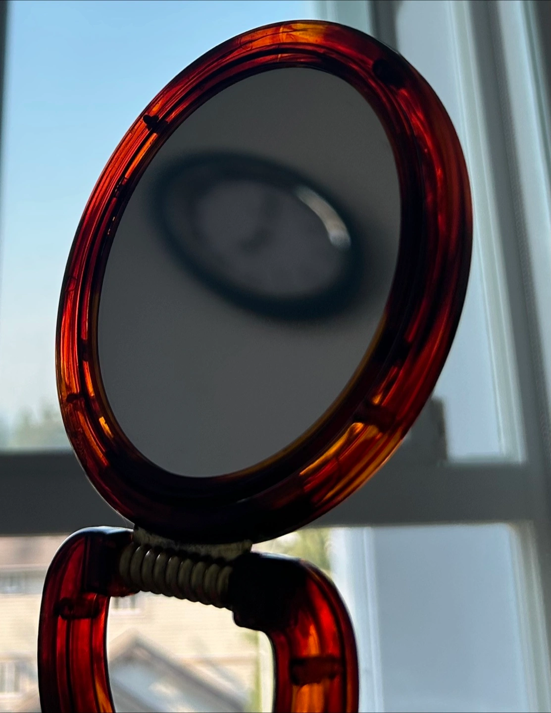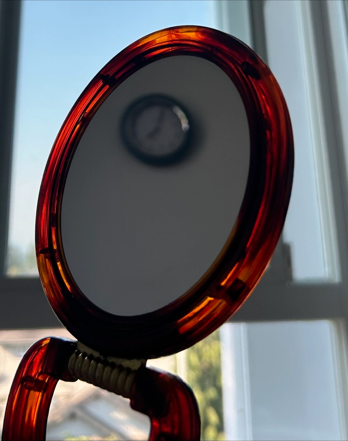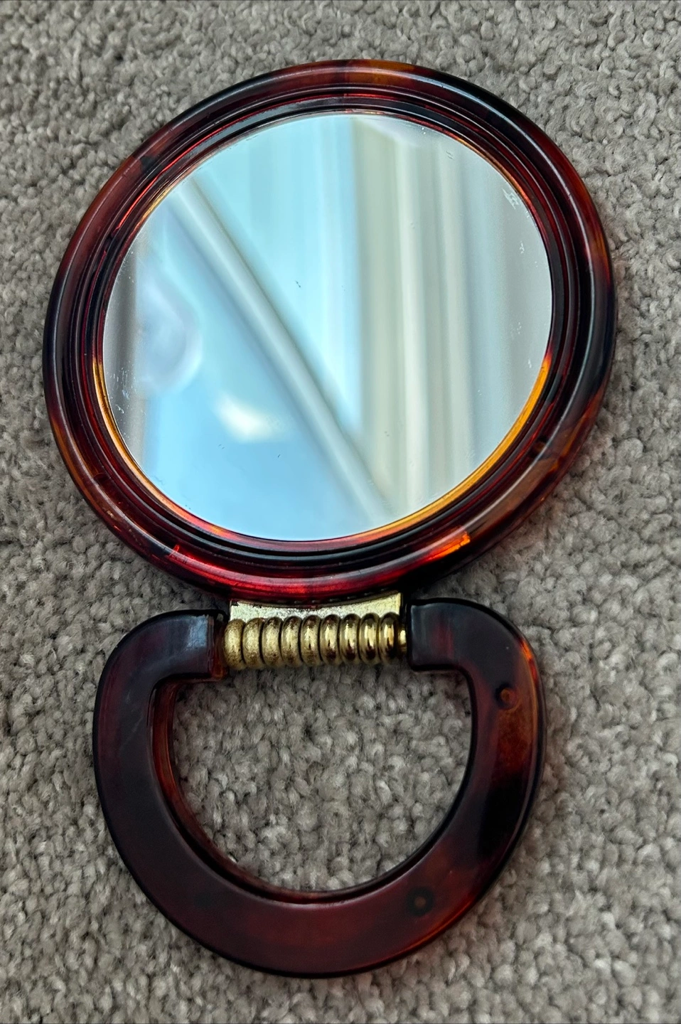 - Two sided mirror (One side normal mirror, one side magnified mirror) - Small size (great for travel use) - No scratches on mirror: clean condition - beautiful brown color sides