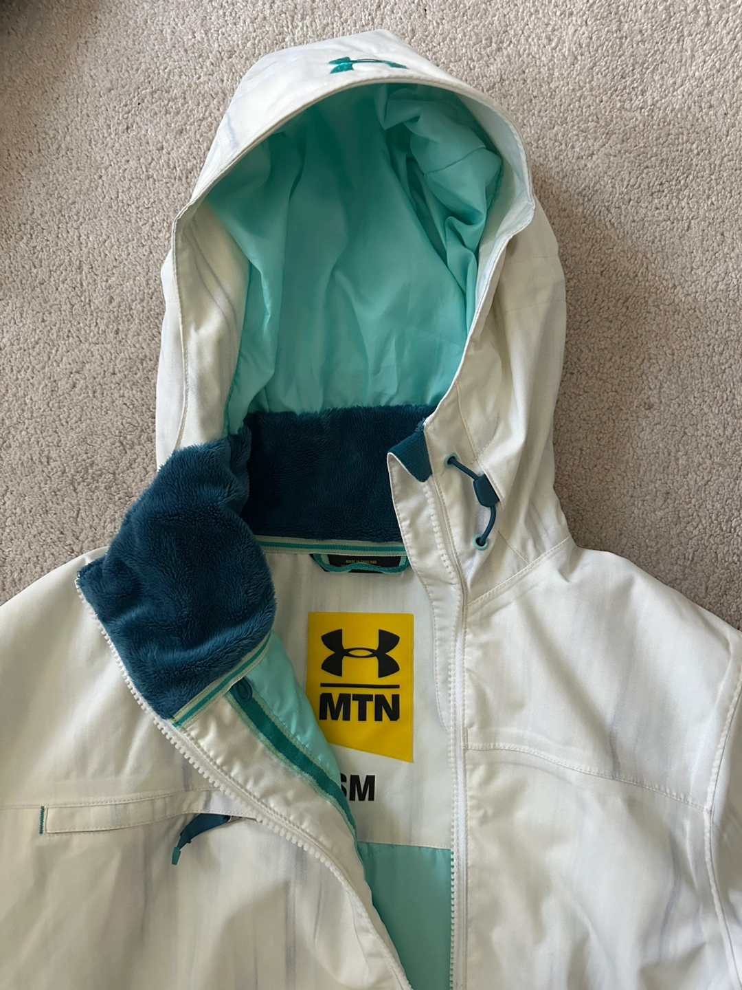 Selling an Under Armour MTN jacket in size small. It's in great condition and ready for the slopes or everyday wear. - Has many pockets, fleece inside, and sweat wicking material (thumb holes)