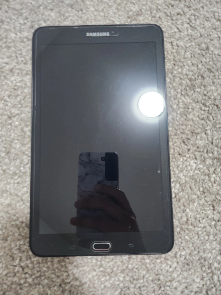Selling a used Samsung tablet in black. It's in decent condition and ready for a new home! Perfect for browsing, reading, or watching videos.