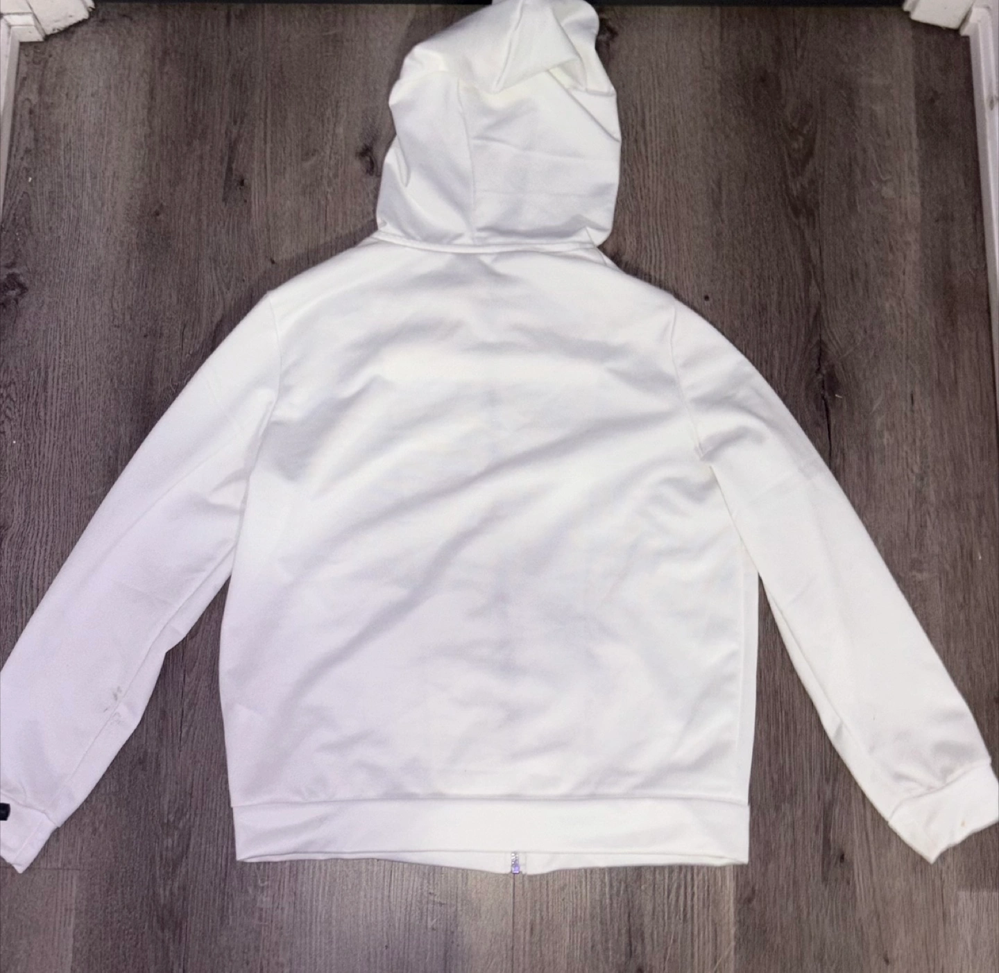 Here's a simple white hoodie! It's in great shape and ready for a new home