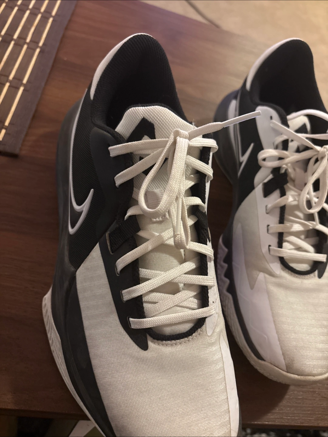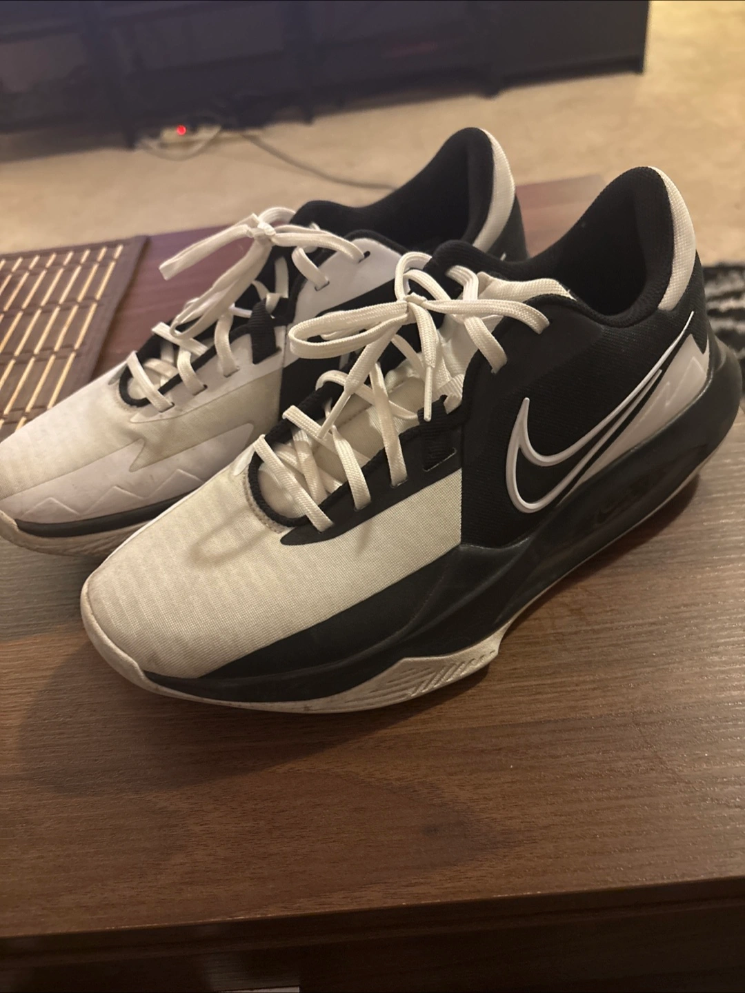 Selling a pair of Nike basketball shoes in black and white. They're in good condition and ready for the court or casual wear. Great for anyone looking for a stylish and functional pair of sneakers! US size 9