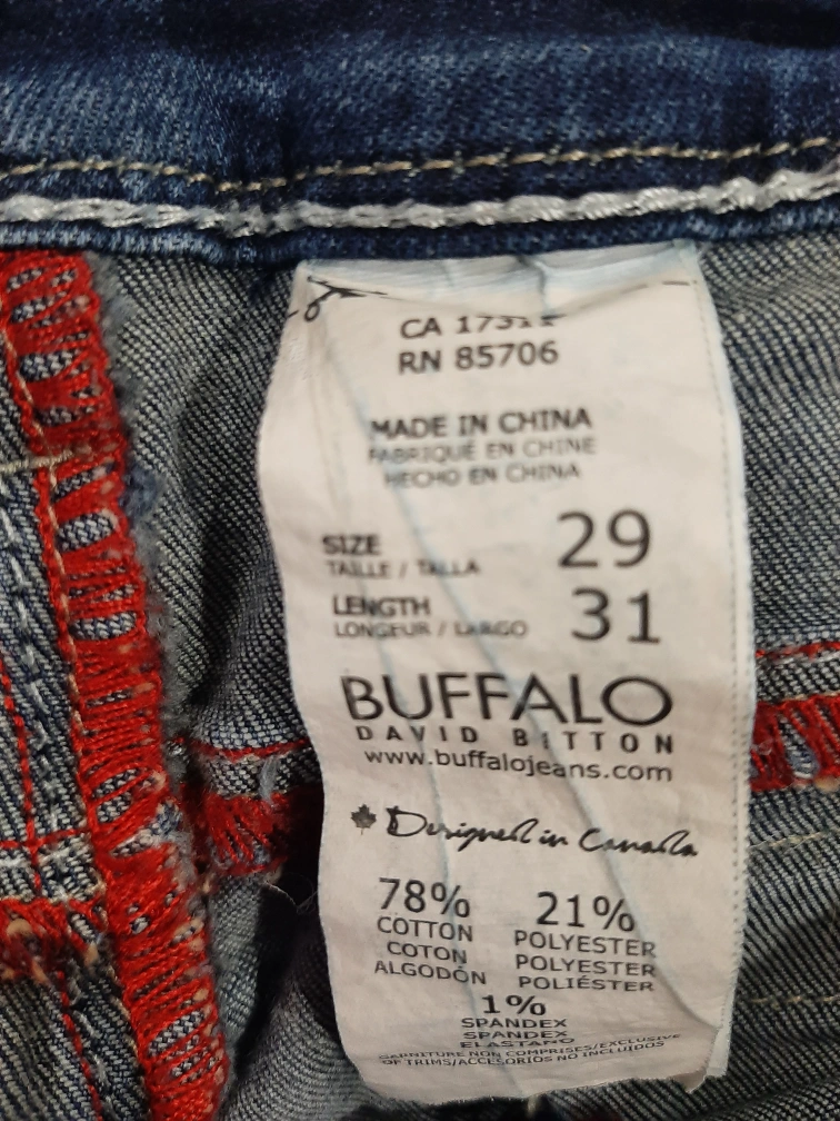 Here are some Buffalo Blu jeans! They are in great condition and feature zipper details on the back pockets. Perfect for a casual look!