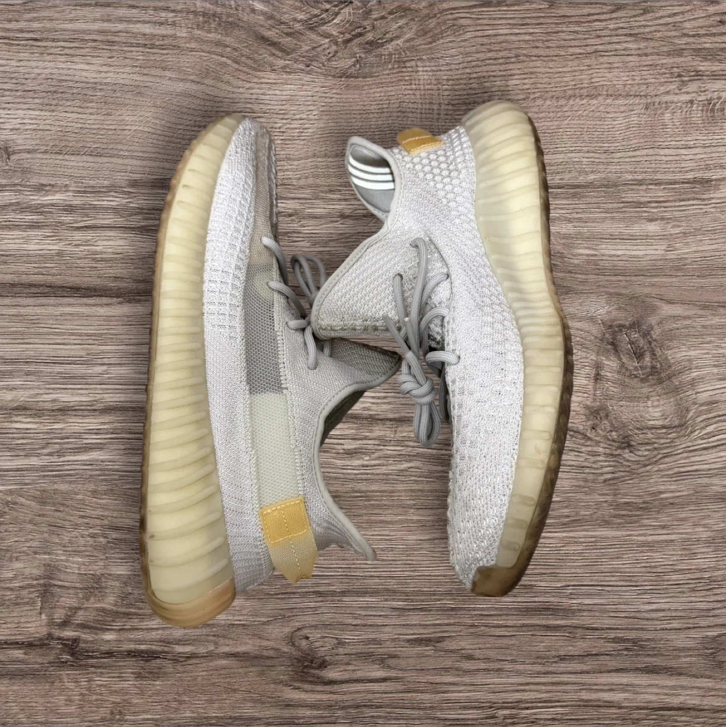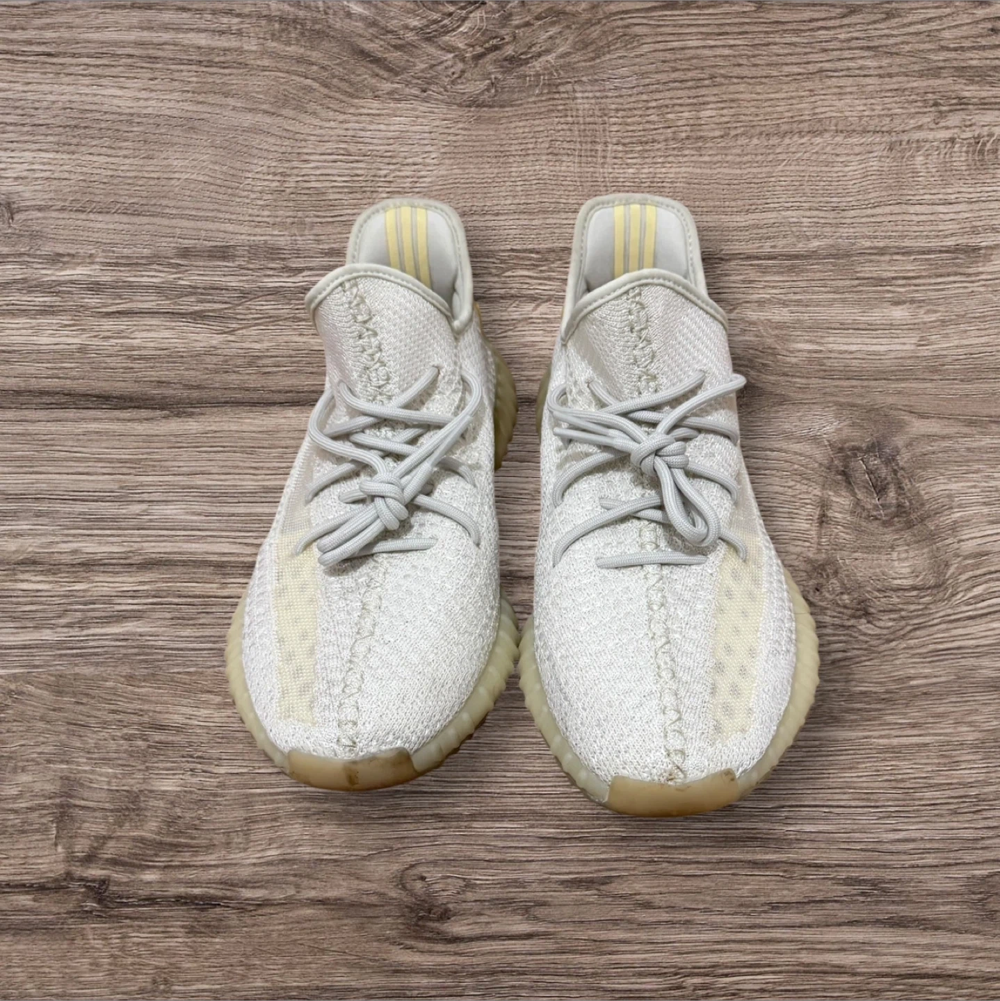 Selling a pair of Adidas Yeezy Boost 350 V2 in the Light/Light/Light colourway! These are a US size 12.5 and come with the original box. The soles show some wear, but the uppers are in good condition. Great for adding a stylish and comfortable touch to your wardrobe!