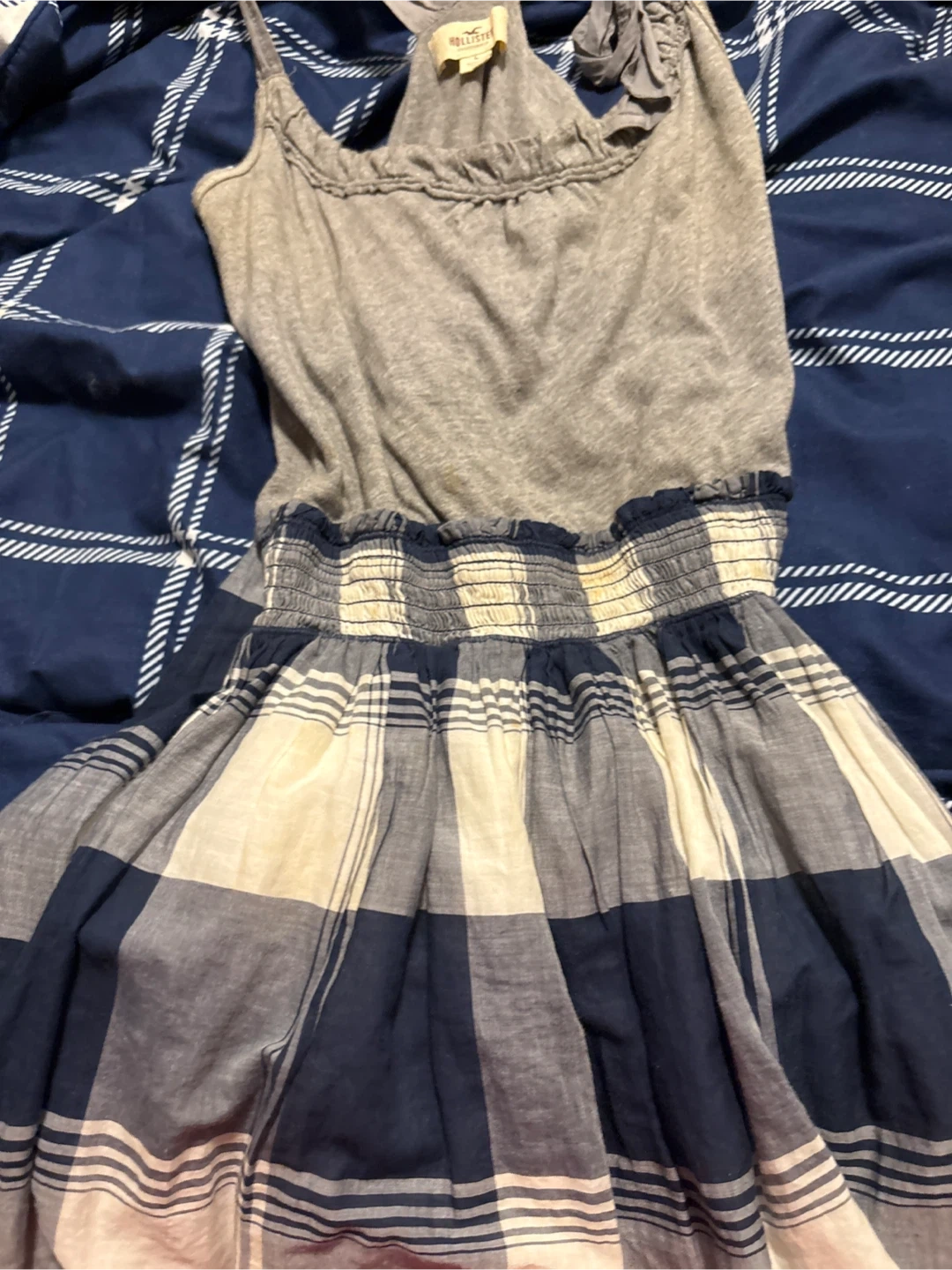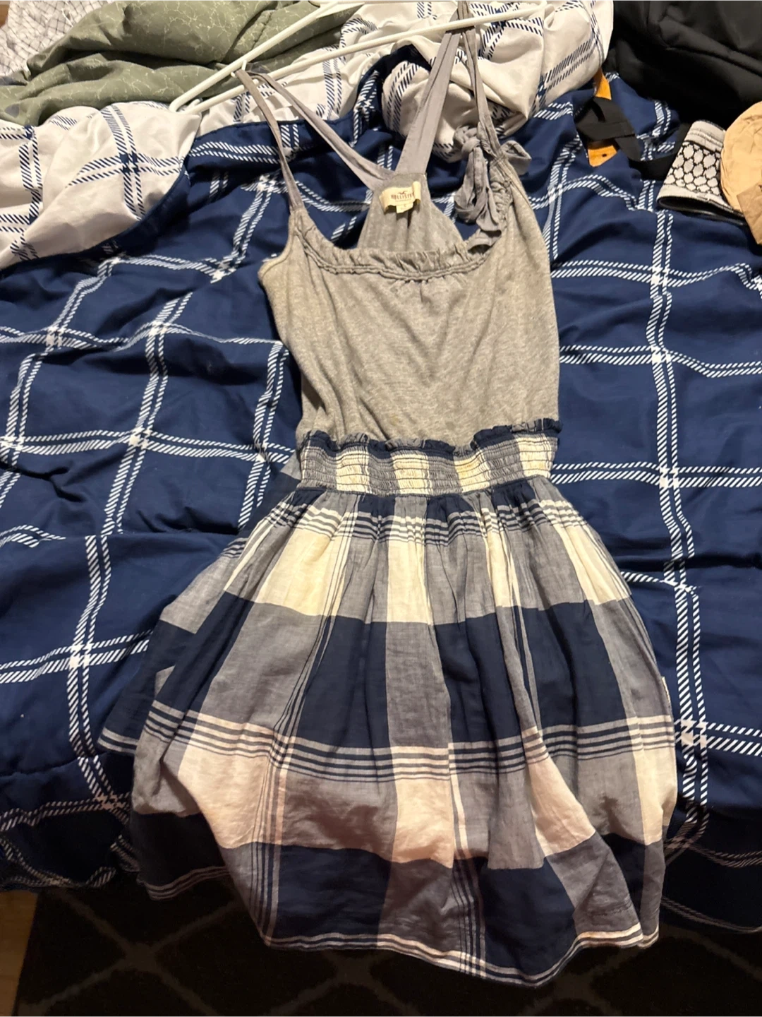 A cute Hollister dress in size large! It features a grey top and a blue and white plaid skirt. Perfect for a casual summer day! Must be gone by August 29th MOVING SAKE must be gone by Saturday September 20th
