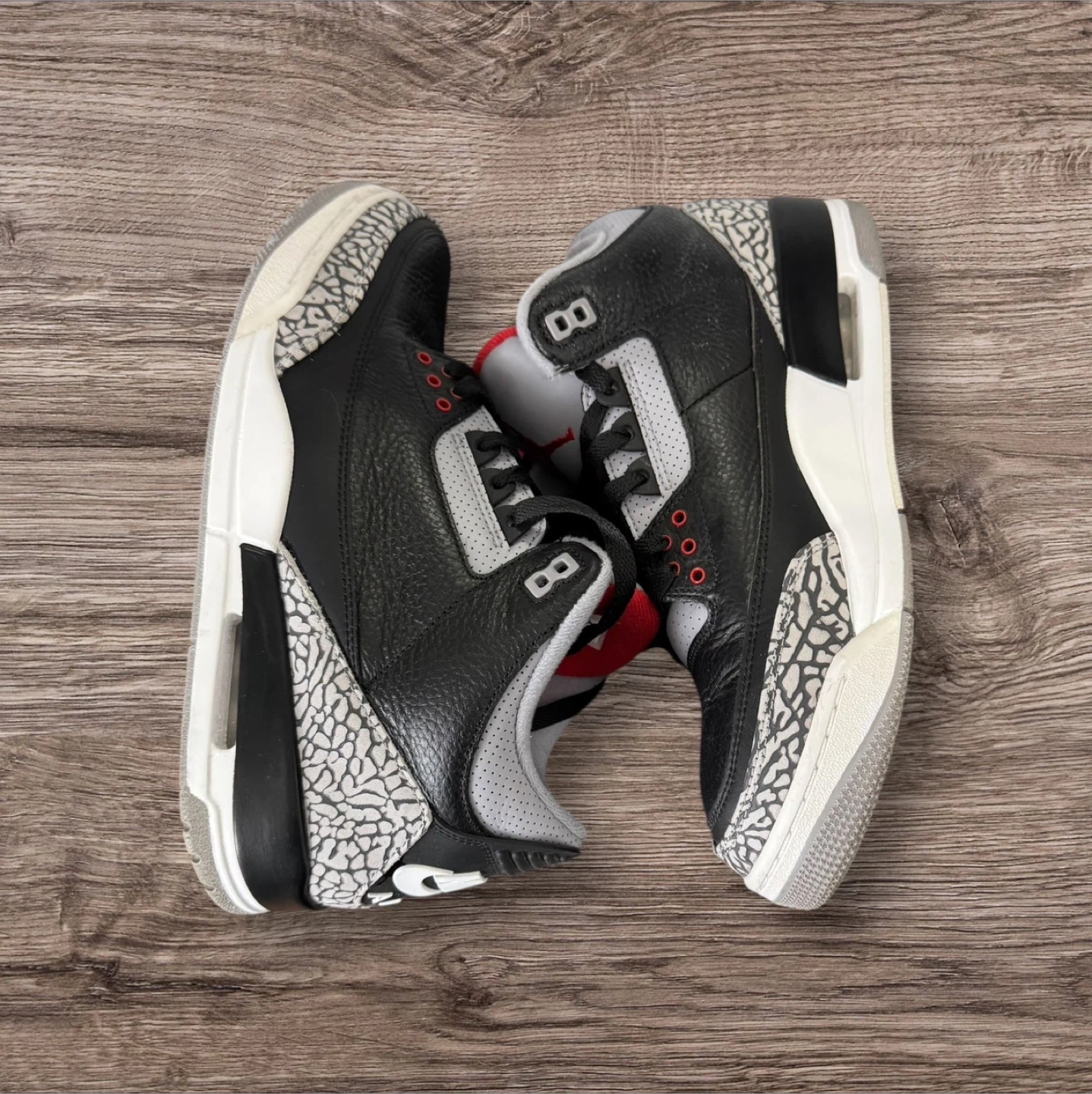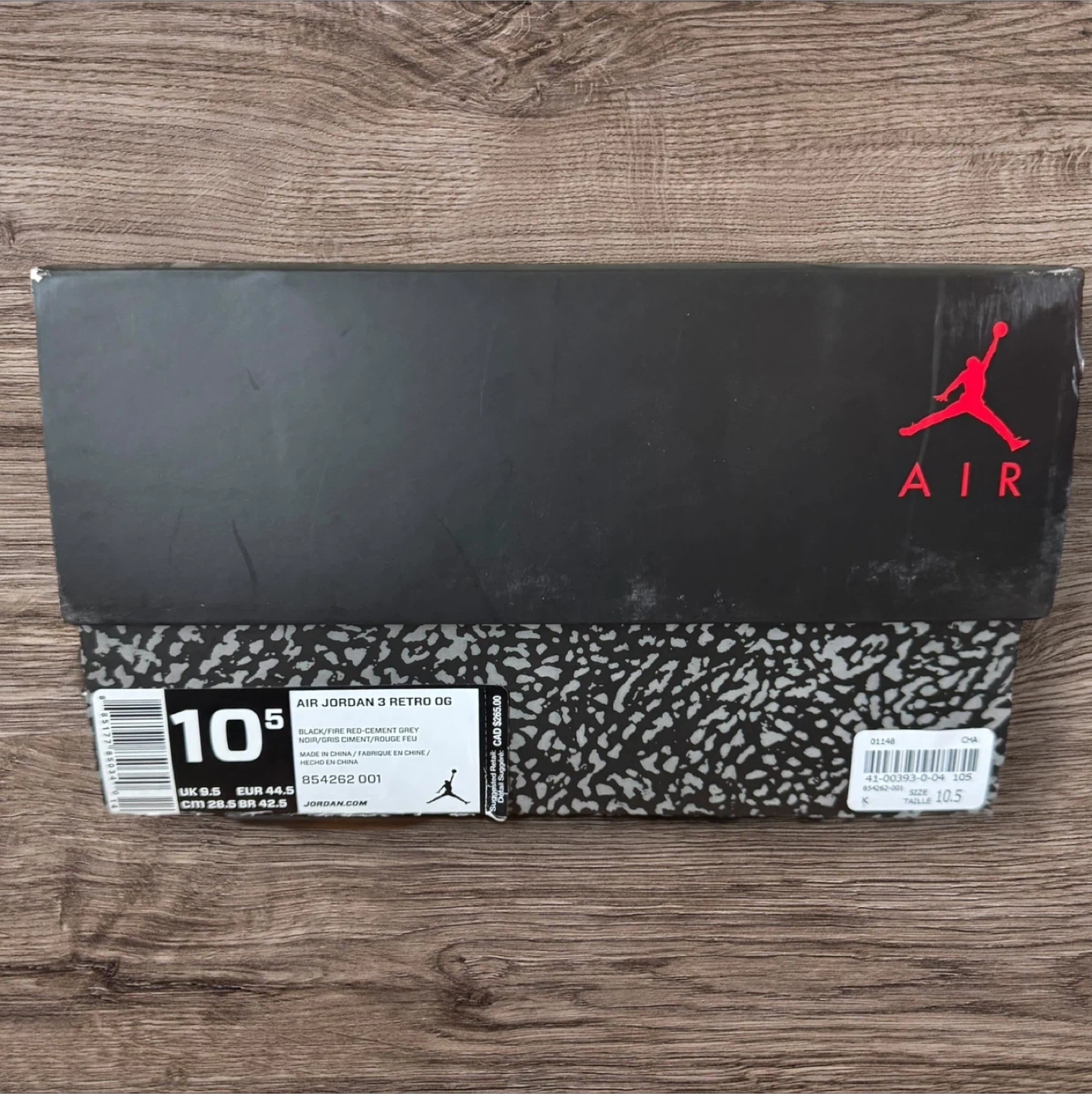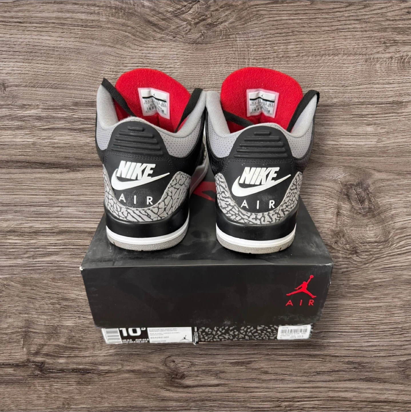 Selling a pair of Air Jordan 3 Retro OG in the Black Cement Grey colourway, size 10.5. The shoes come with the original box.