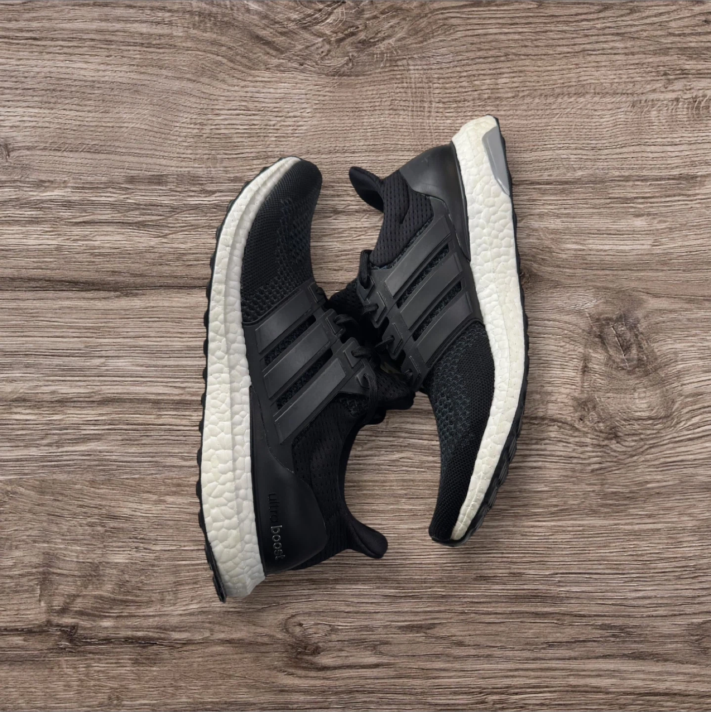 Selling a pair of Adidas Ultra Boost sneakers in black, men's size 11. These are in great shape and ready for a new home. Perfect for running or just everyday wear!