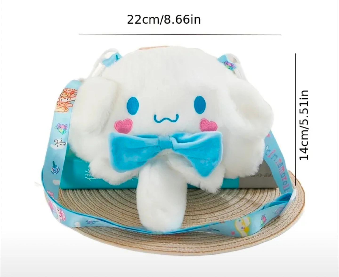 The size is about 22cm/8.66in wide and 14cm/5.51in tall. Perfect for adding a touch of kawaii to your outfit
