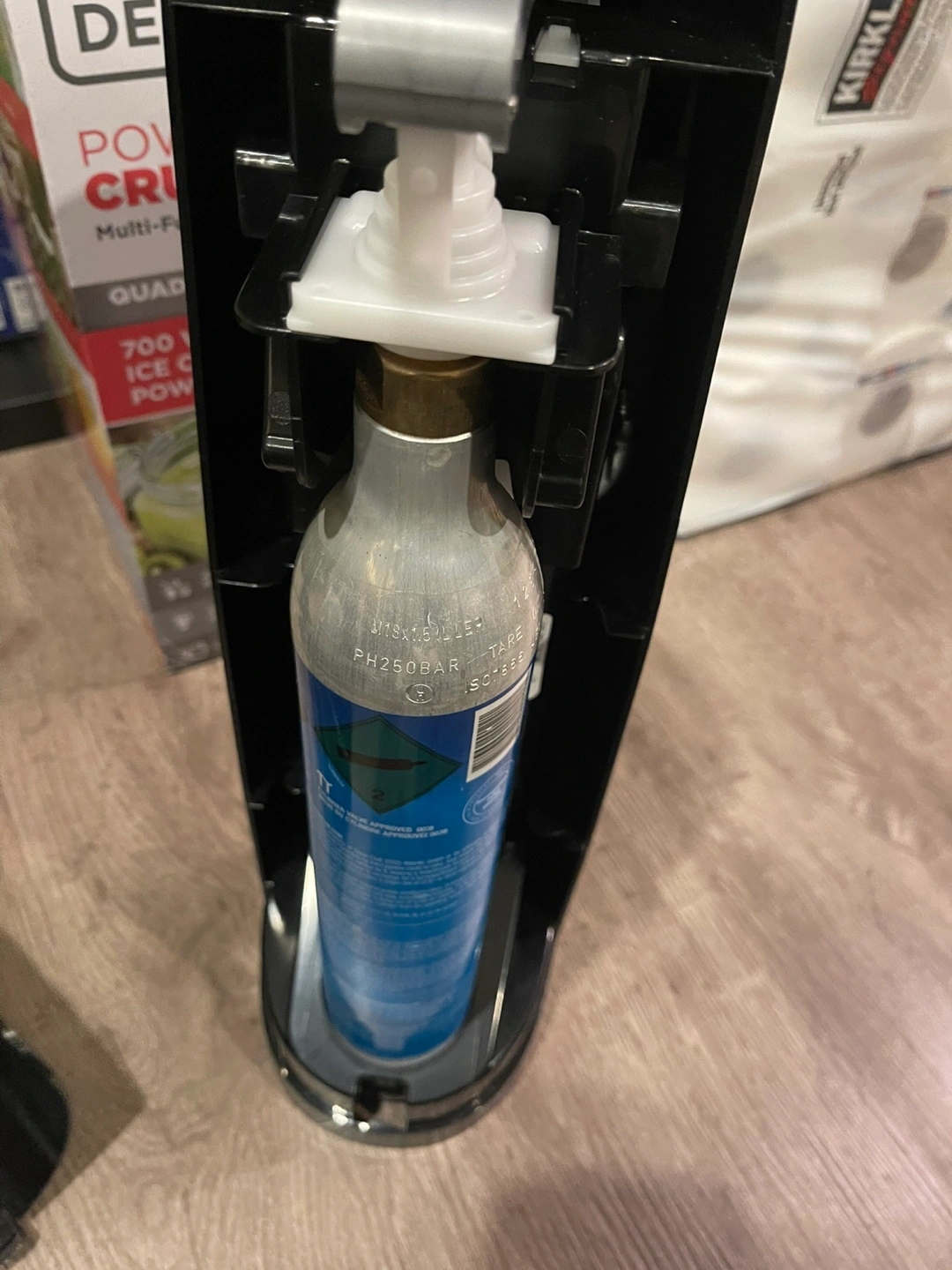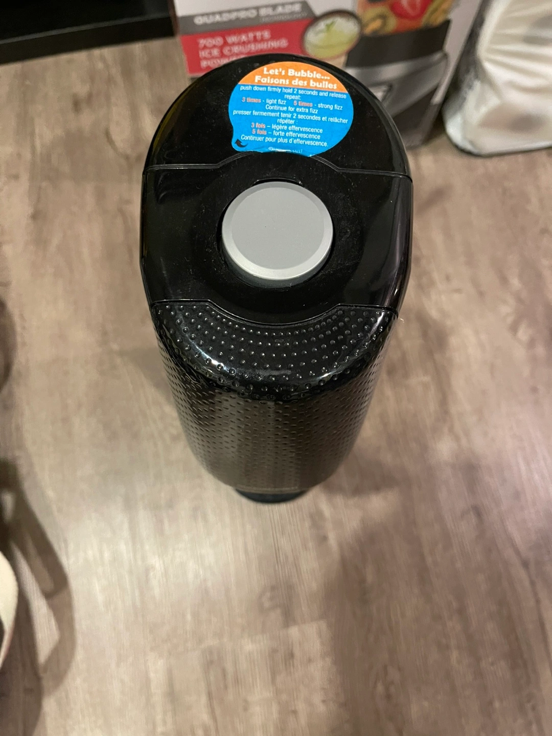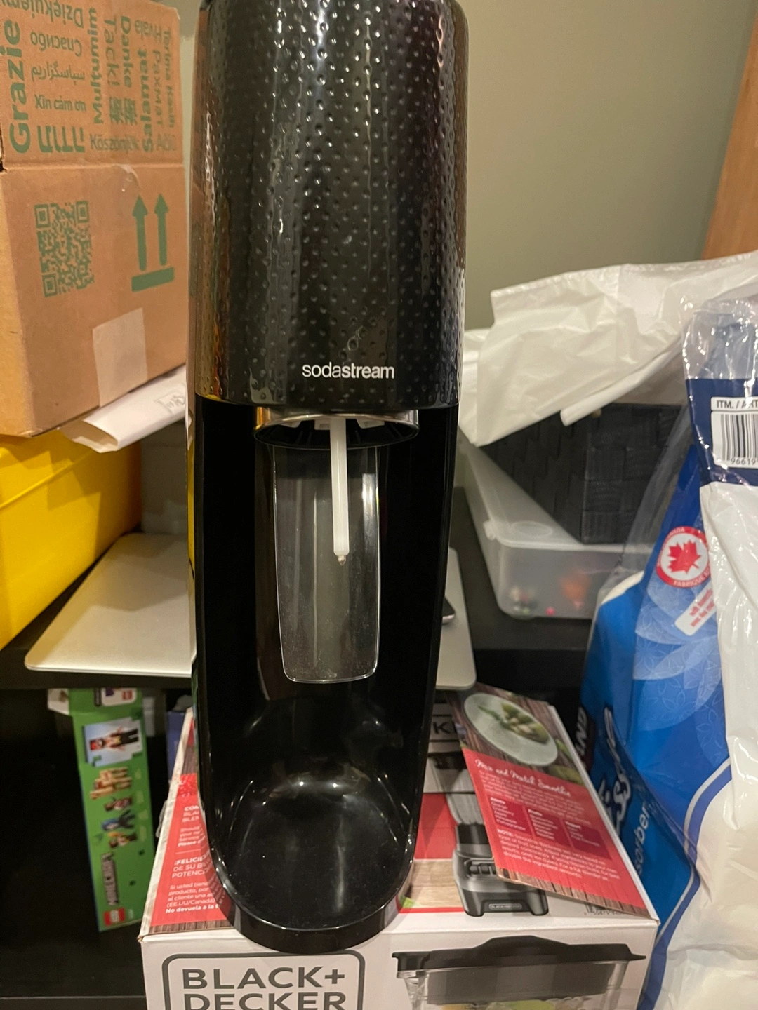Get bubbly with this SodaStream! It's a great way to make your own sparkling water at home. Enjoy customizing your fizz level with just the push of a button. It’s in great condition and ready for a new home! Comes 2 refillables & a PBA free bottle