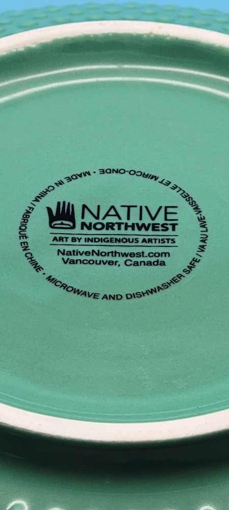 I'm selling a lovely serving bowl from Native Northwest. Porcelain Art series by Gitxsan artist Trevor Angus offers bright delights for your Westcoast dinning experience. It features a beautiful Indigenous design with a swirling Killerwhale on the interior in shades of blue, white, and brown. Bold and Beautiful, this serving bowl has an elegantly textured exterior a dotted pattern in a light green colour. The Orca is a communicator and highly regarded guardian of the sea. Whales travel together and symbolize long life and unity. Dimensions: 9.5” dia. 70oz. Material: Porcelain, Microwave and dishwasher safe It makes the ideal centre piece for any feast! Perfect for salads and serving up your favourite disnes! Please look closely at the attached photos to go along with the description and the condition of the item. Willing to ship at the Buyers expense. Please see my many other listings. Thank you for looking. Have a Happy Day! 🙂