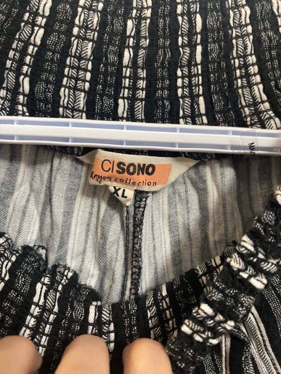 Selling a pair of Cisono Rayon Collection pants in size XL. They feature a stylish black and white striped pattern and a comfortable elastic waistband. Perfect for casual wear! Comes with a stretchy waist!