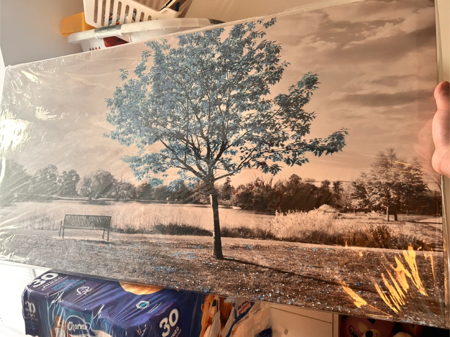 This is a beautiful tree landscape wall art piece, still in its original packaging. It would look great in any room!