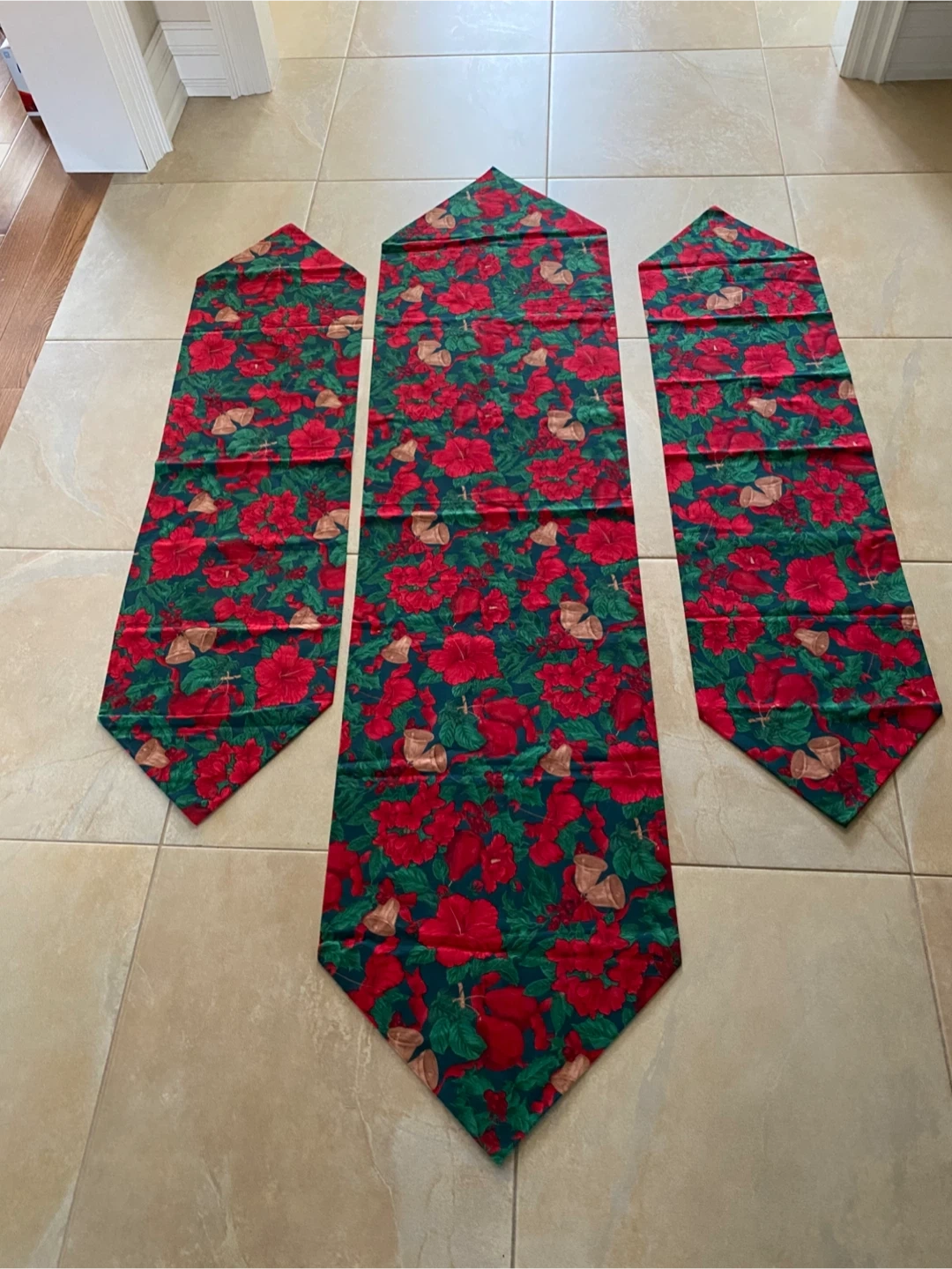 Selling a set of 3 Christmas table runners. Perfect for adding a touch of holiday cheer to your dining table! Size: Large-67” Length X 16”Wide Small (2) 47” Length X 12”Wide