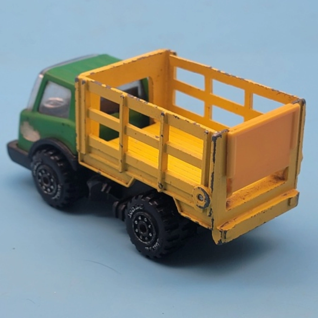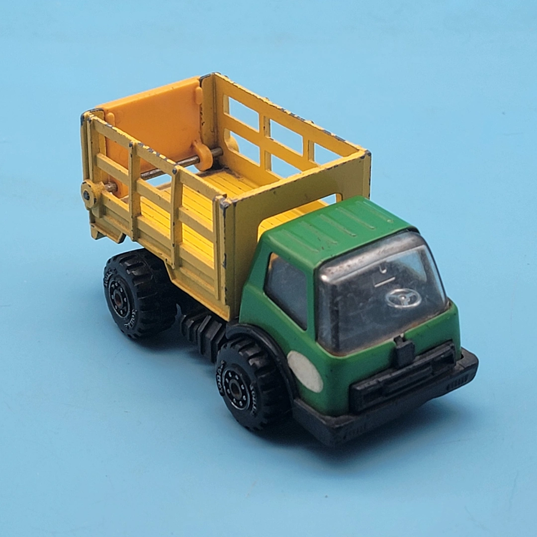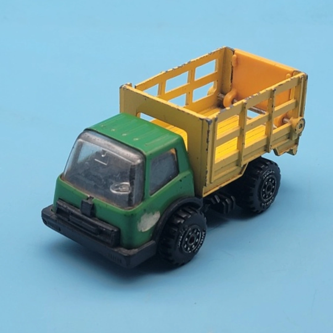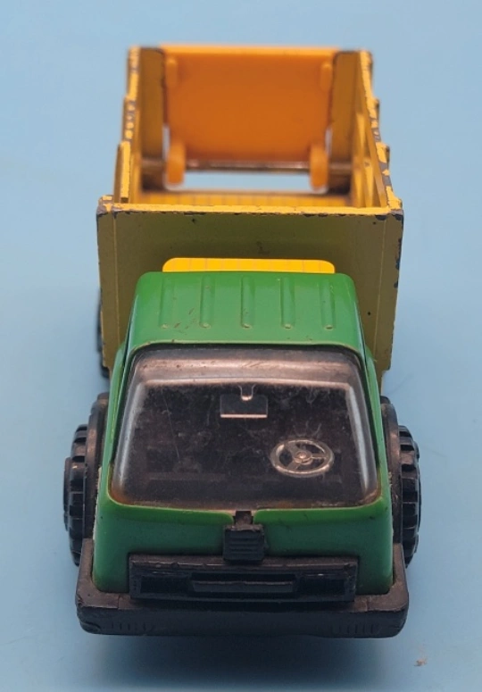 This is a vintage Tonka Mites Cargo Truck, manufactured in Japan in 1976. Smaller than Tiny Tonkas, these were branded Tonka Mites. They were produced for a short number of years and then production ceased due to copyright issues. It features a green Cab made of pressed steel and a yellow plastic cargo bed with opening rear gate. The Tonka Mites line was marketed with the slogan "Fun to play with alone or together, fun to collect as a whole fleet". Length: Approx. 3 7/8" Width: Approx. 1 7/8" Height: Approx. 1 7/8" Weight: 107g It's green and yellow and shows some signs of wear, adding to its character. Great for collectors or kids who love playing with trucks. Please look closely at the attached photos to go along with the description and the condition of the item. Willing to ship at the Buyers expense. Please see my many other listings. Thank you for looking. Have a Happy Day! 🙂