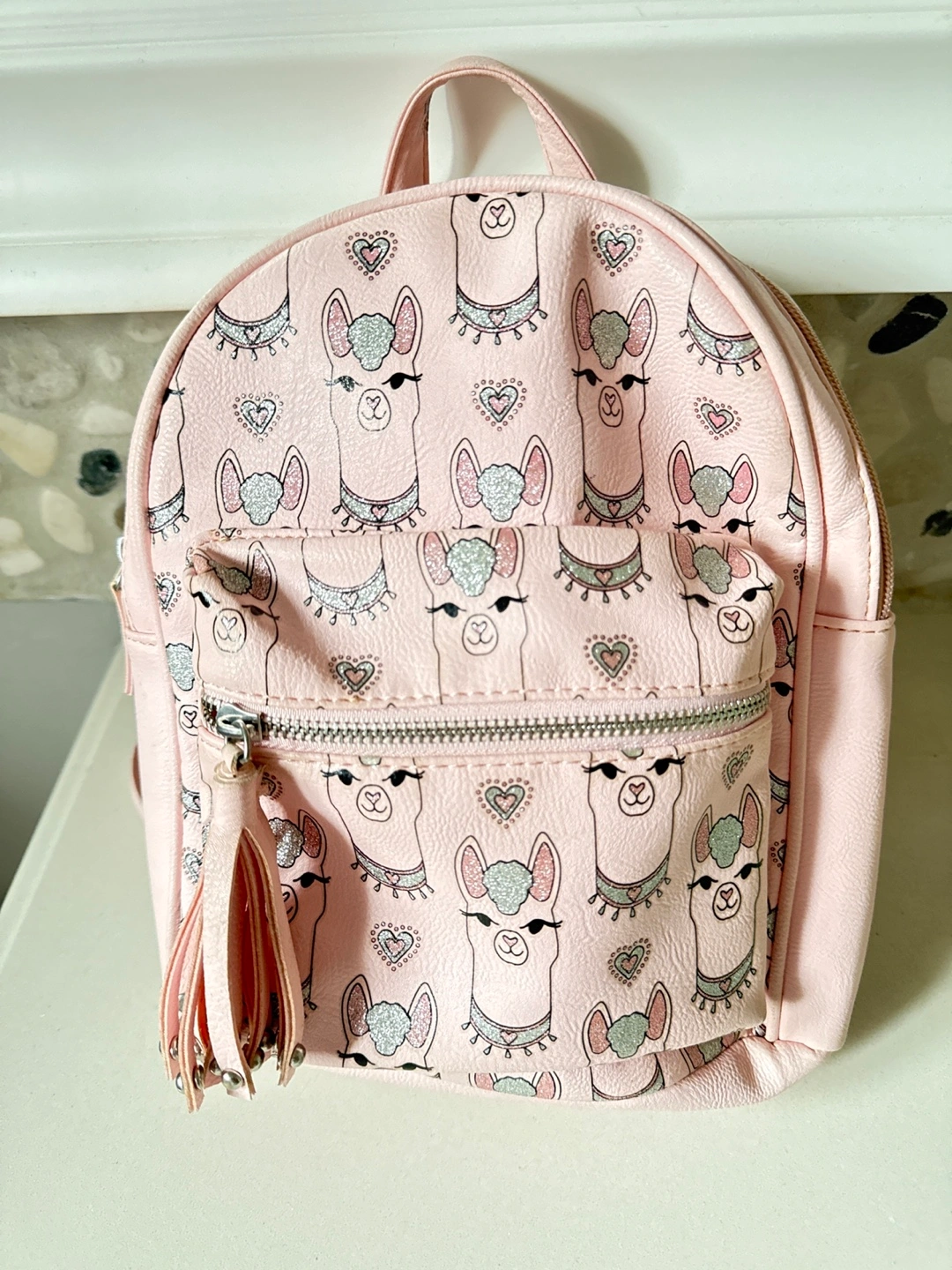 Super cute pink mini backpack with a fun llama pattern! It's in great shape and perfect for little ones or anyone who loves a small, stylish bags.