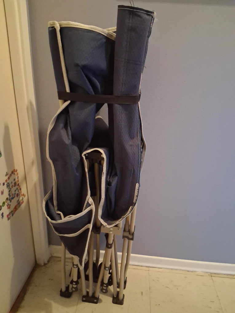 Looking to sell this folding camping cot! It's perfect for camping or as an extra bed for guests. It folds up for easy storage and transport. It's in okay condition, no holes or rips and ready for a new home!