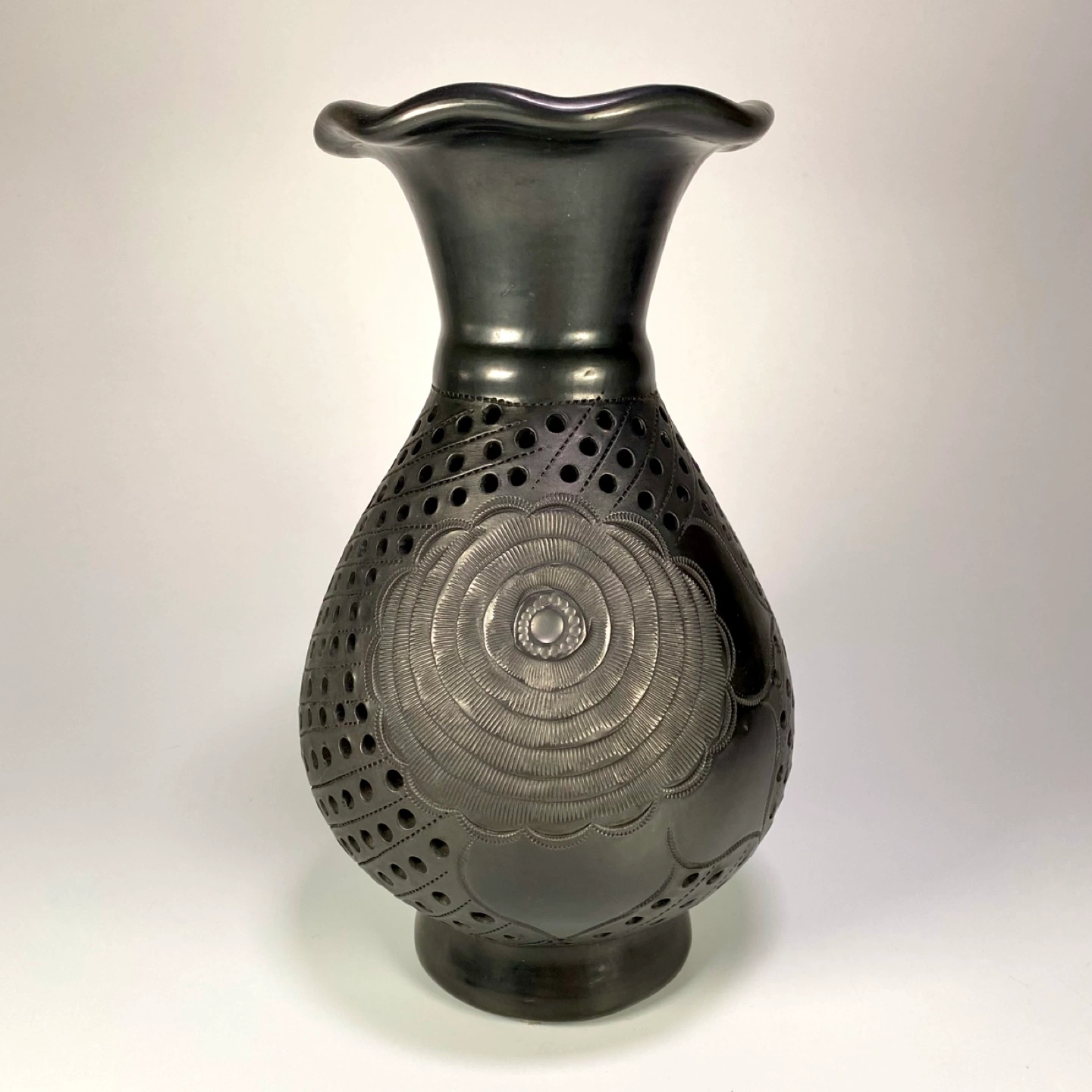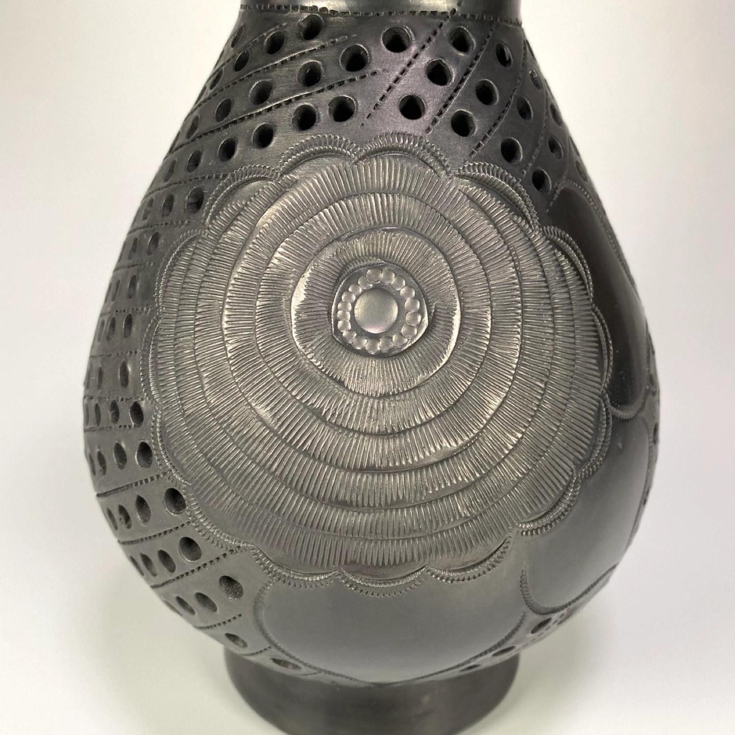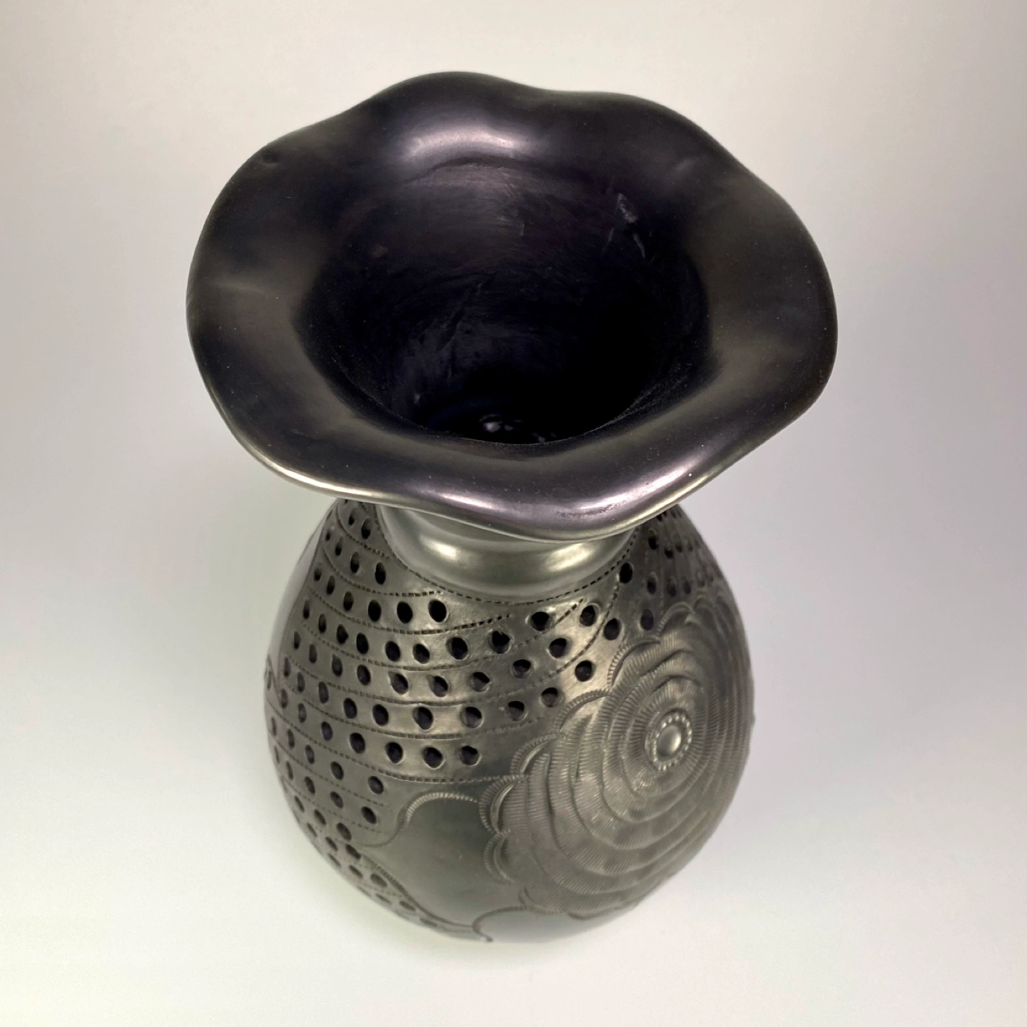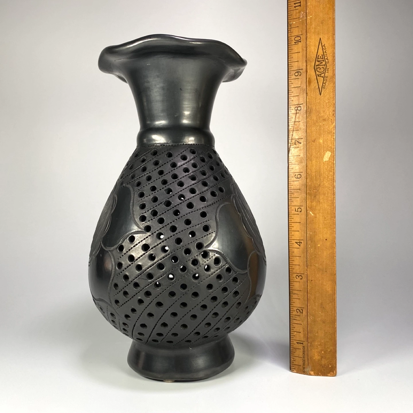 Donna Rose barro negro pottery perforated art vase, from Oaxaca Mexico. ~9.75โh ๐ฅ$40 โ Yes, it is available ๐ Pick up near Bloor & Ossington ๐ Downtown delivery extra ๐ฆ Ask about shipping