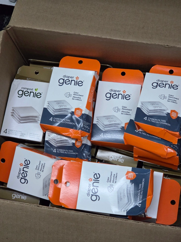 Selling a mix of Compost Genie and Diaper Genie carbon filters. These filters are designed to absorb odours and keep things fresh. Great for keeping your compost bin or diaper pail smelling clean! BRAND NEW!! 51 packs in total!!! 11 packs of diaper genie filters 40 packs of compost genie filters
