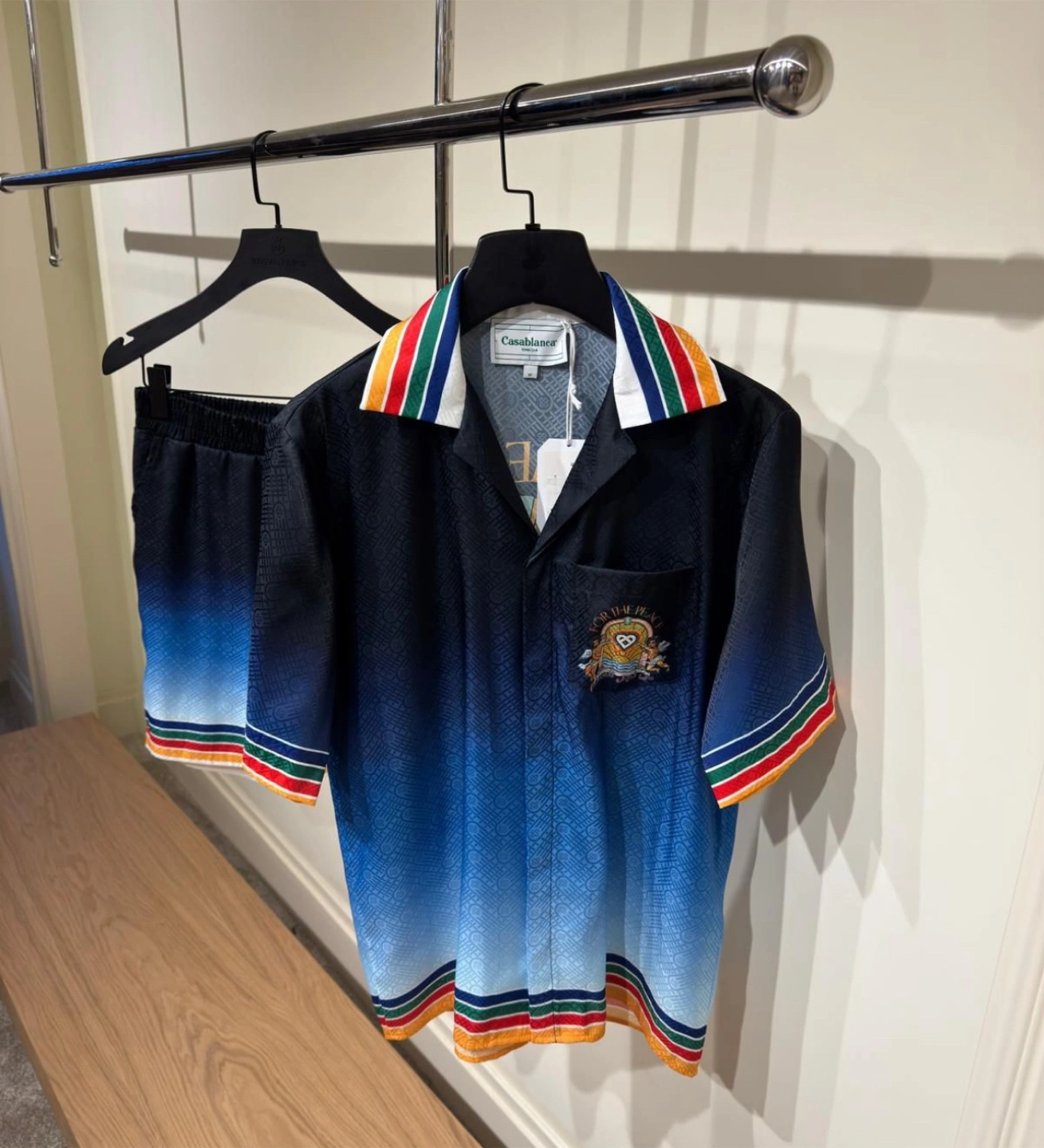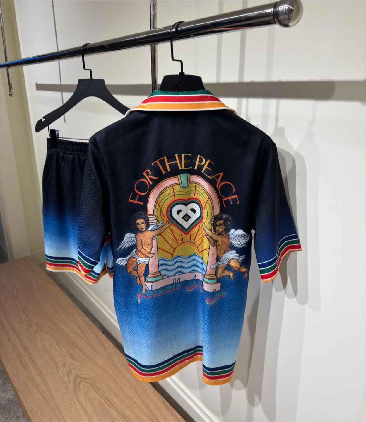 Selling a Casablanca silk shirt and shorts set. The set features a unique design with vibrant colours and intricate details. The shirt has a collared neckline and short sleeves, while the shorts have a comfortable fit. Perfect for adding a touch of luxury to your wardrobe!