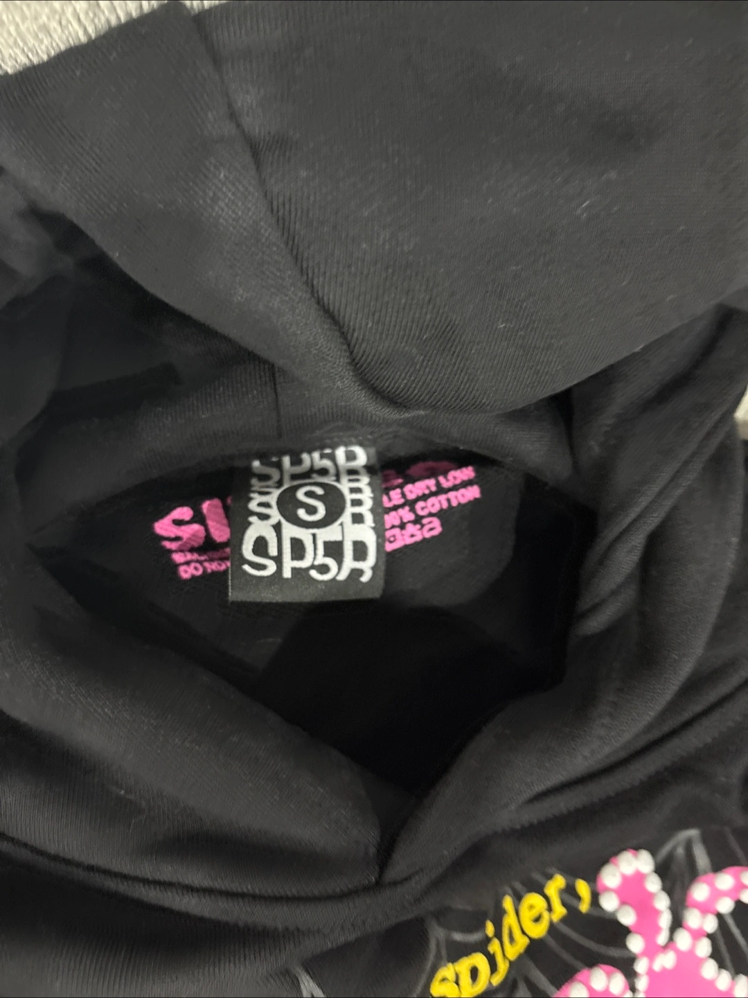 1:1 Black sp5der hoodie size mens small no tag no bag wore once no rips no tears and has puff.