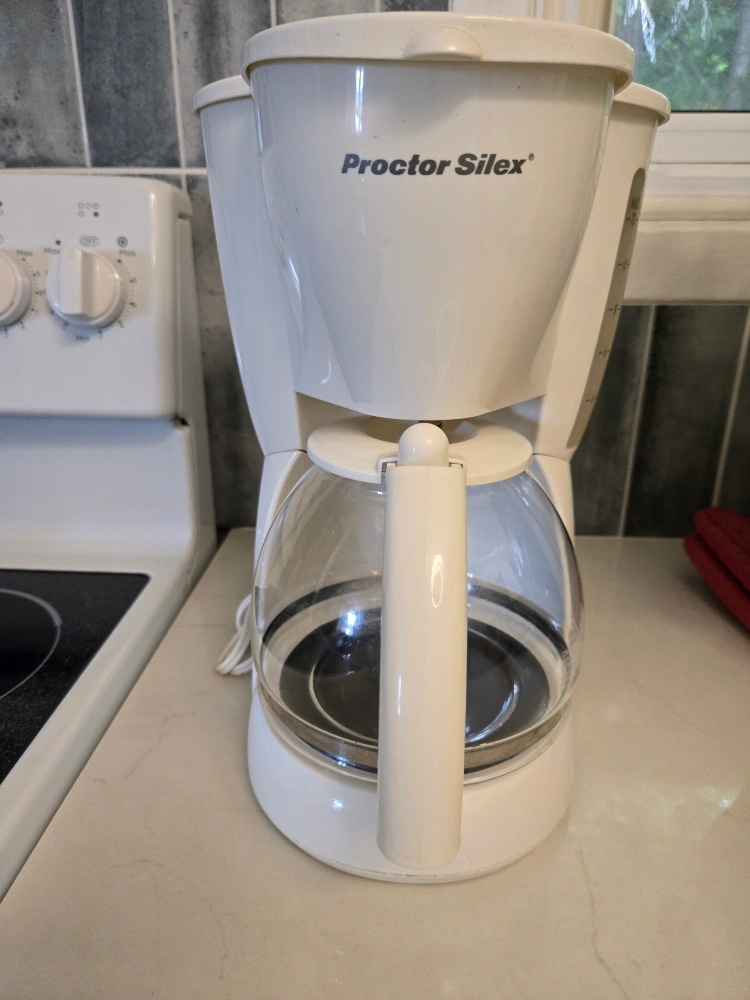 Selling a Proctor Silex coffee maker. It's in good working condition and ready to brew your favourite coffee! It includes the glass carafe.