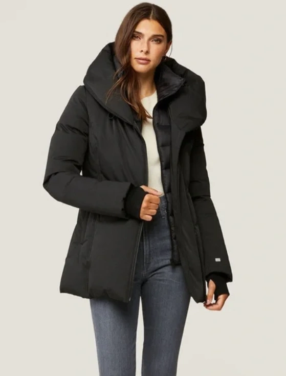 Never worn. Soia & Kyo is a sister brand of Mackage. This is their Annalisa jacket in size medium in the colour black. Very warm - withstands temperatures up to -25C. "The modern ANNALISA by SOIA & KYO is designed with a large face-framing hood, and nylon puffer bib and collar. Show off your feminine silhouette in this slim-fit style, detailed with rib storm cuffs and thumbholes, polar fleece lined pockets, and water-repellent exterior. Features: Mid-thigh length, Large hood, Nylon puffer bib & collar, Rib storm cuffs with thumb-holes, YKK 1-way silver metal zipper front closure, Angled welt pockets with hidden zippers, Polar fleece lined pockets, Up to -25 °c / -13 °f, 90% down, 10% feather, Fill power of 700+, Water-repellent & water-resistant." Purchased for $615, selling for $400 OBO. We can arrange for a pick-up from Buy and Sell Safe Exchange Zones (ex. 21 Division - near Bramalea City Centre in Brampton).