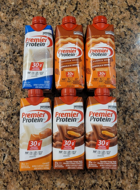 Brand new unopened Premier protein shakes. 6, 325ml single cartons of Premier Protein High Protein Shakes. 30 grams of protein per bottle. Low Fat. Naturally and artificially flavoured. Various Flavours Include: ▪︎ Vanilla (1) - Expires Aug 2026 ▪︎ Caramel (1) - Expires May 2026 ▪︎ Chocolate Peanut Butter (I have 2) - Expires April 2026 ▪︎ Pumpkin Spice (I have 2) - Expires July 2026 $3 eaxh! (open to bundle sale) Come from a smoke and pet-free home.