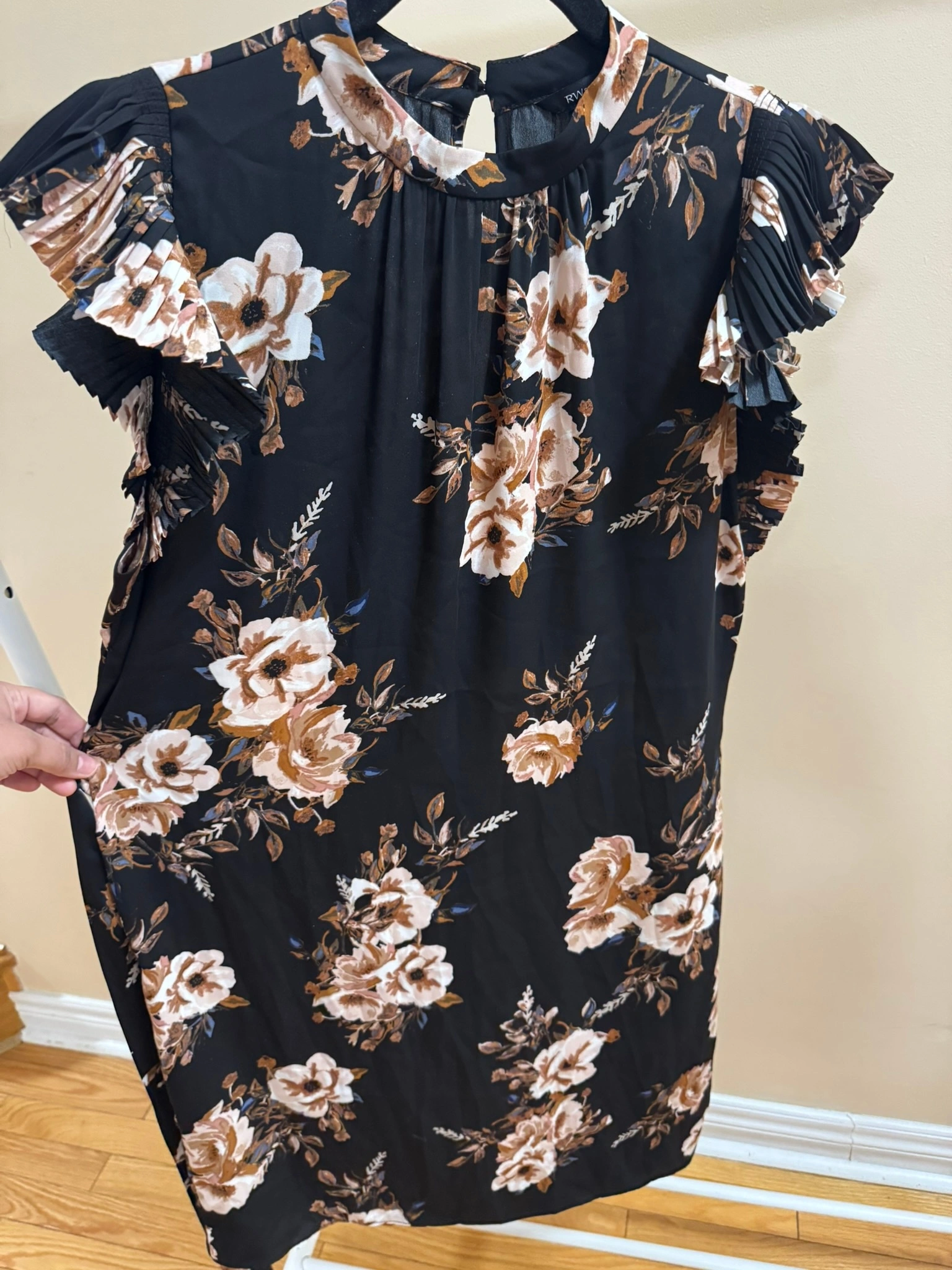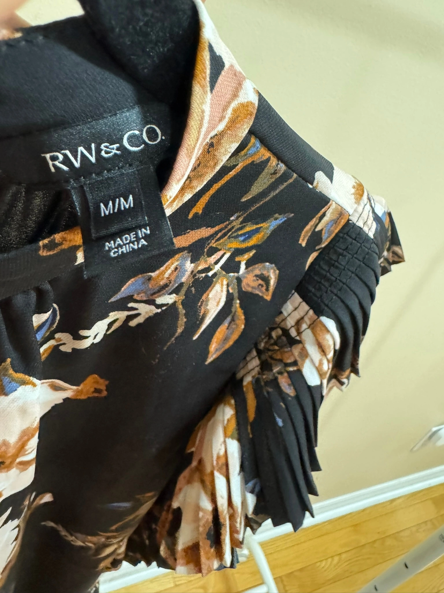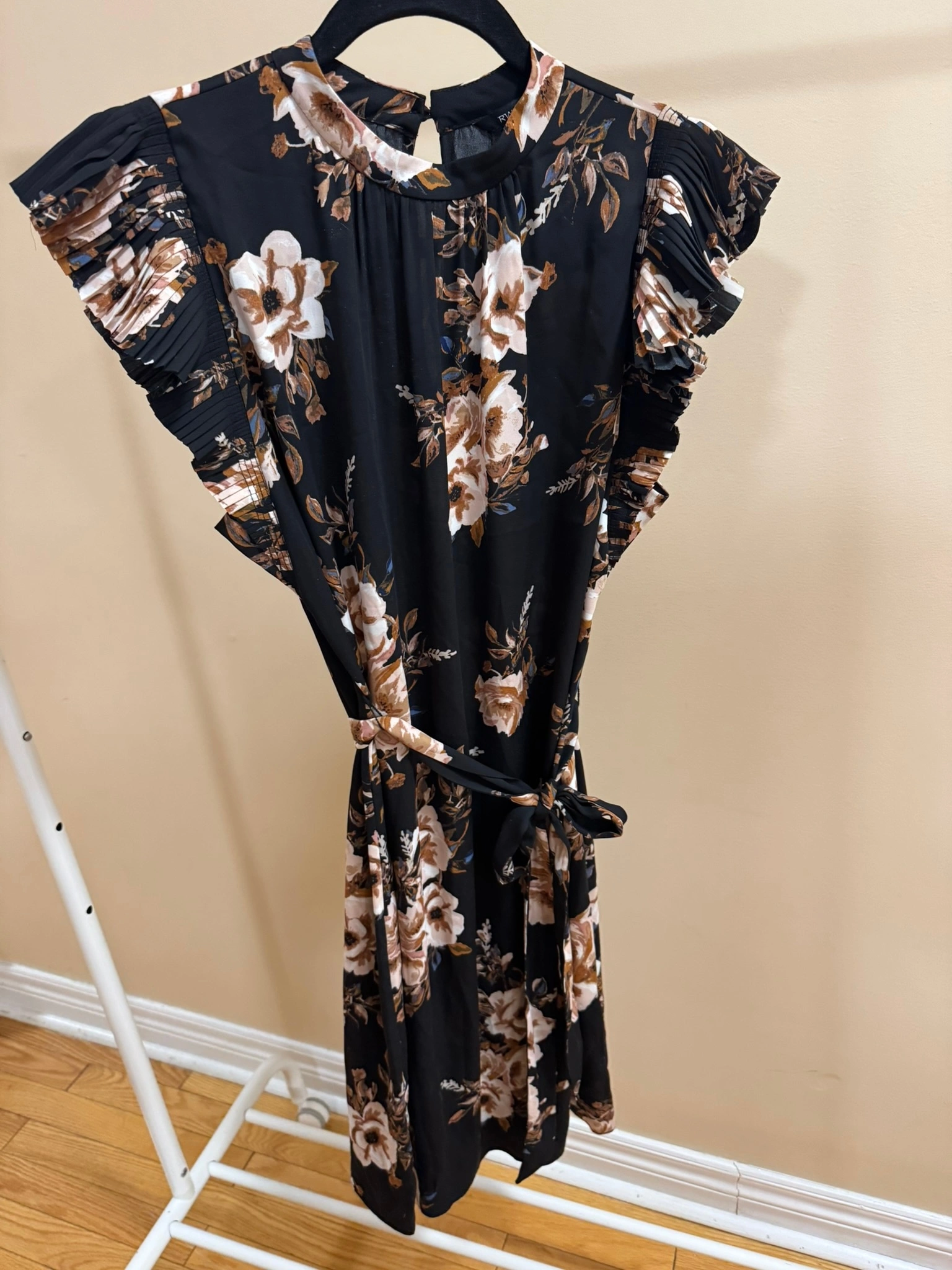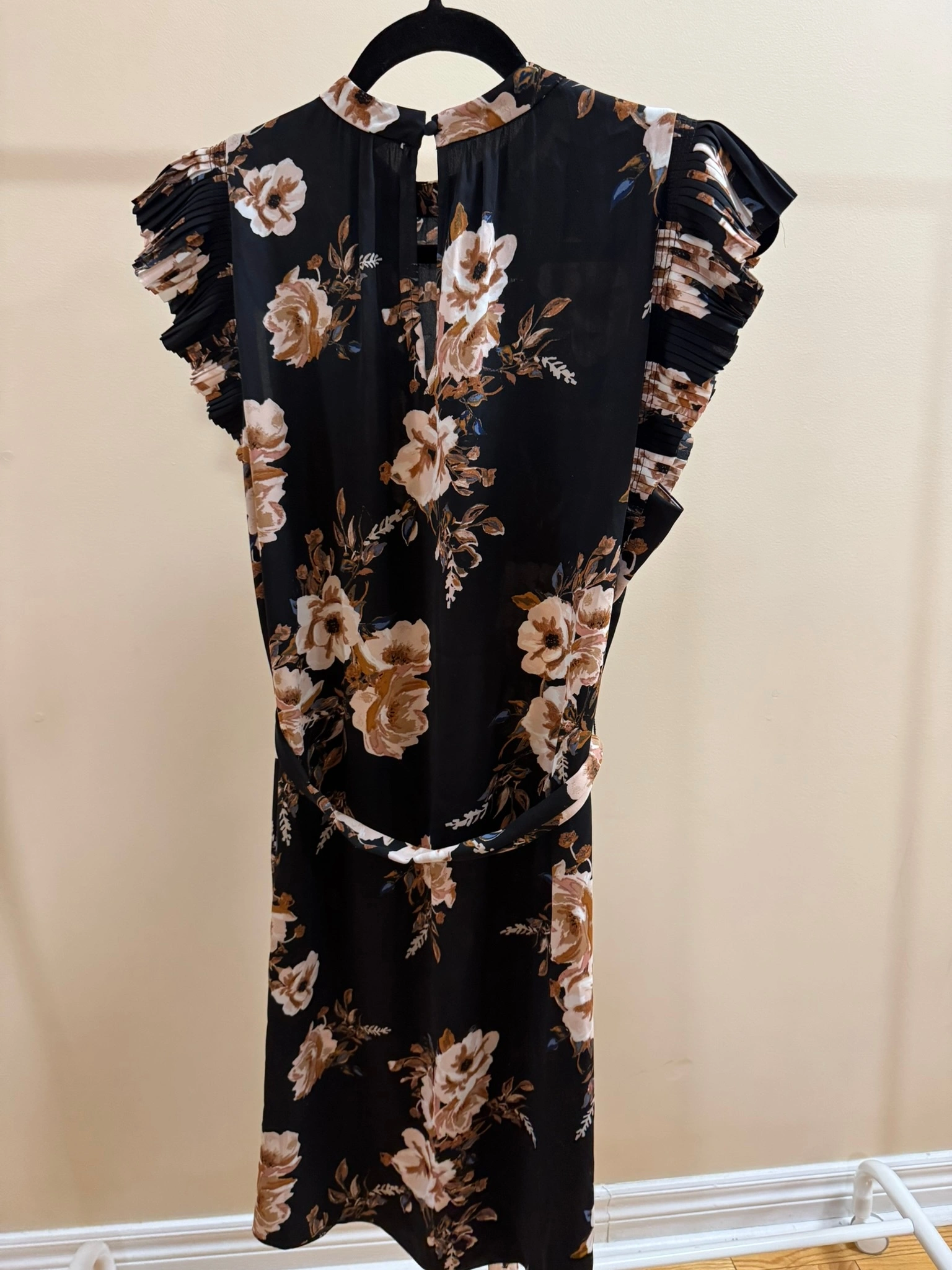 Elegant black base with beige and brown floral print Pleated ruffle sleeves for a stylish touch Flattering fit with subtle waist tie Lightweight and flowy – perfect for events, dinners, or work This dress is beautiful, feminine, and super versatile. Great quality as expected from RW&CO., and ideal for both everyday wear or special occasions. $25 OBO We can arrange for a pick-up from Buy and Sell Safe Exchange Zones (ex. 21 Division - near Bramalea City Centre in Brampton).