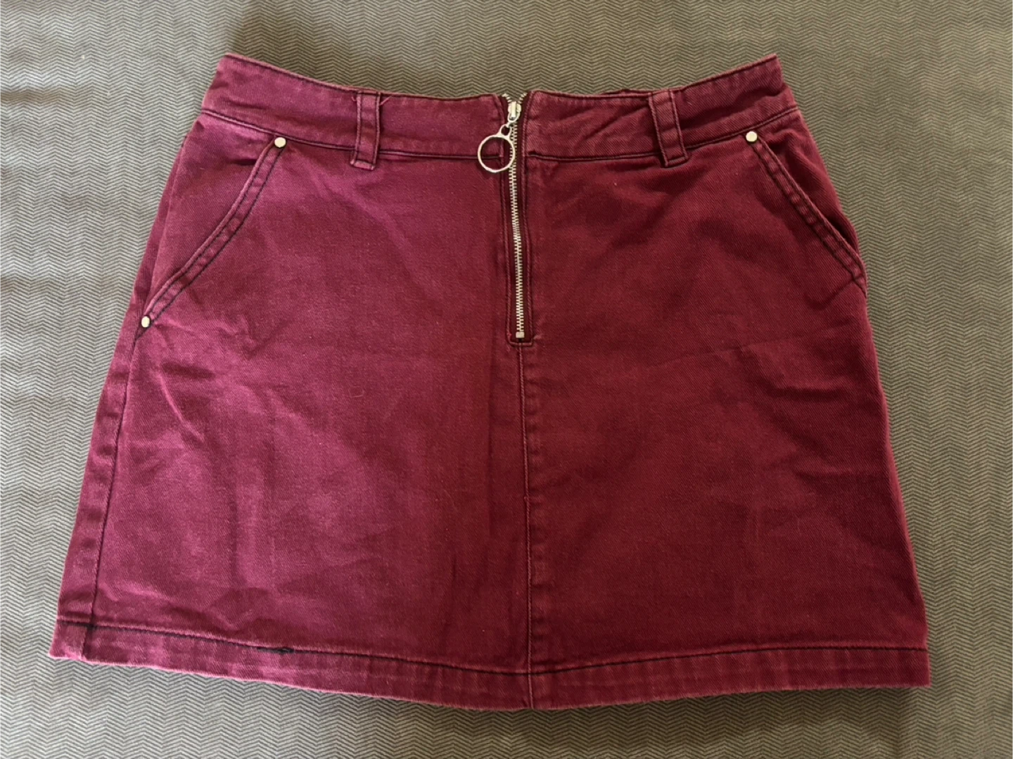 This is a cute maroon mini skirt from Sofi Angel. It's a size medium and features a zipper down the front. Perfect for adding a pop of colour to your wardrobe! Pick up in debert or truro! Check out my other listings as well :)