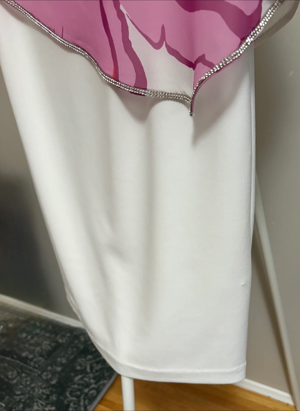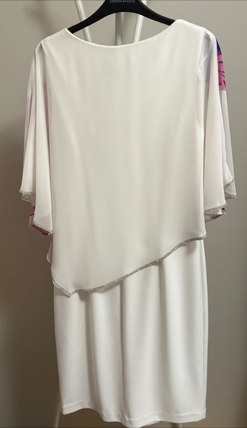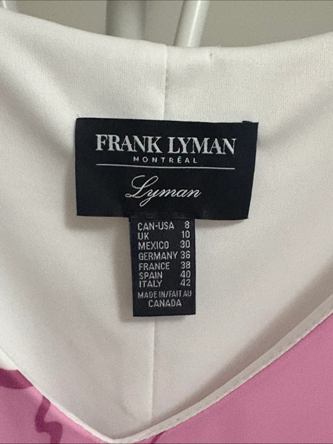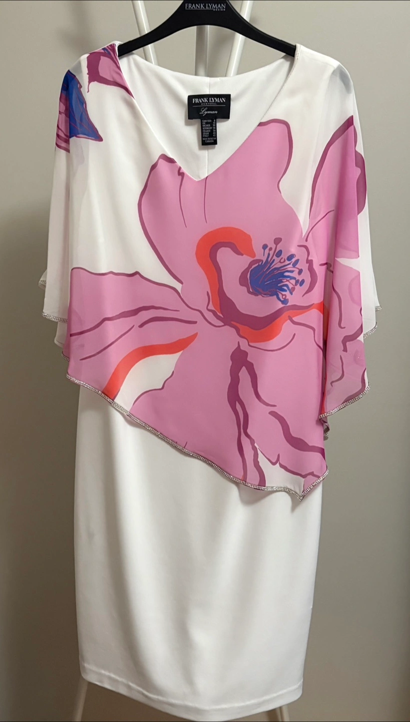 Selling a beautiful Frank Lyman dress in a size 8. Brand new. Never worn. It features a lovely floral design and is perfect for any special occasion, like Weddings or dinner parties. Slight imperfections. Please see pictures. There are silver sparkles that outline the ruffles. This adds another layer of elegance. Cash only, please. I may be able to meet you closer to where you are.