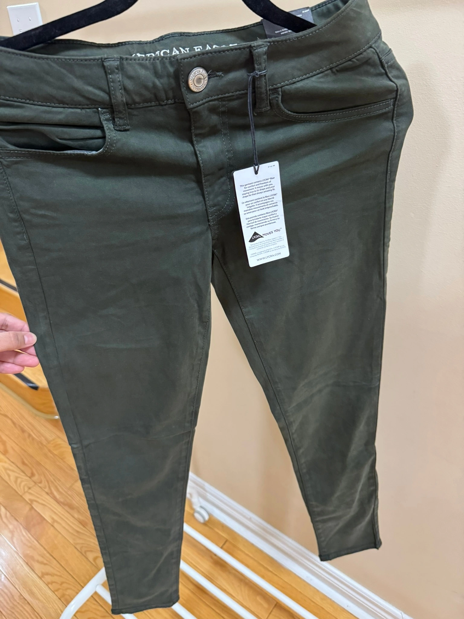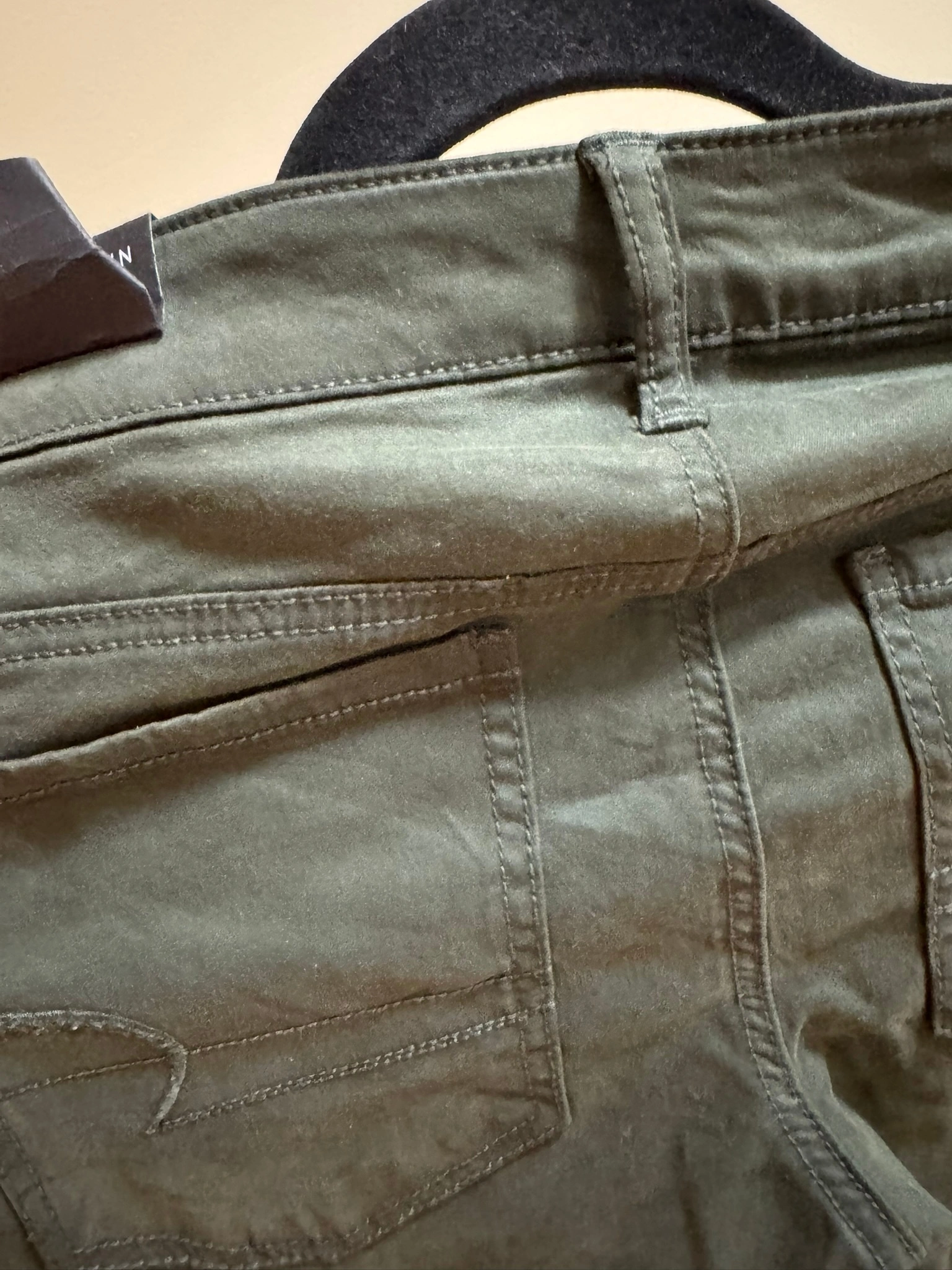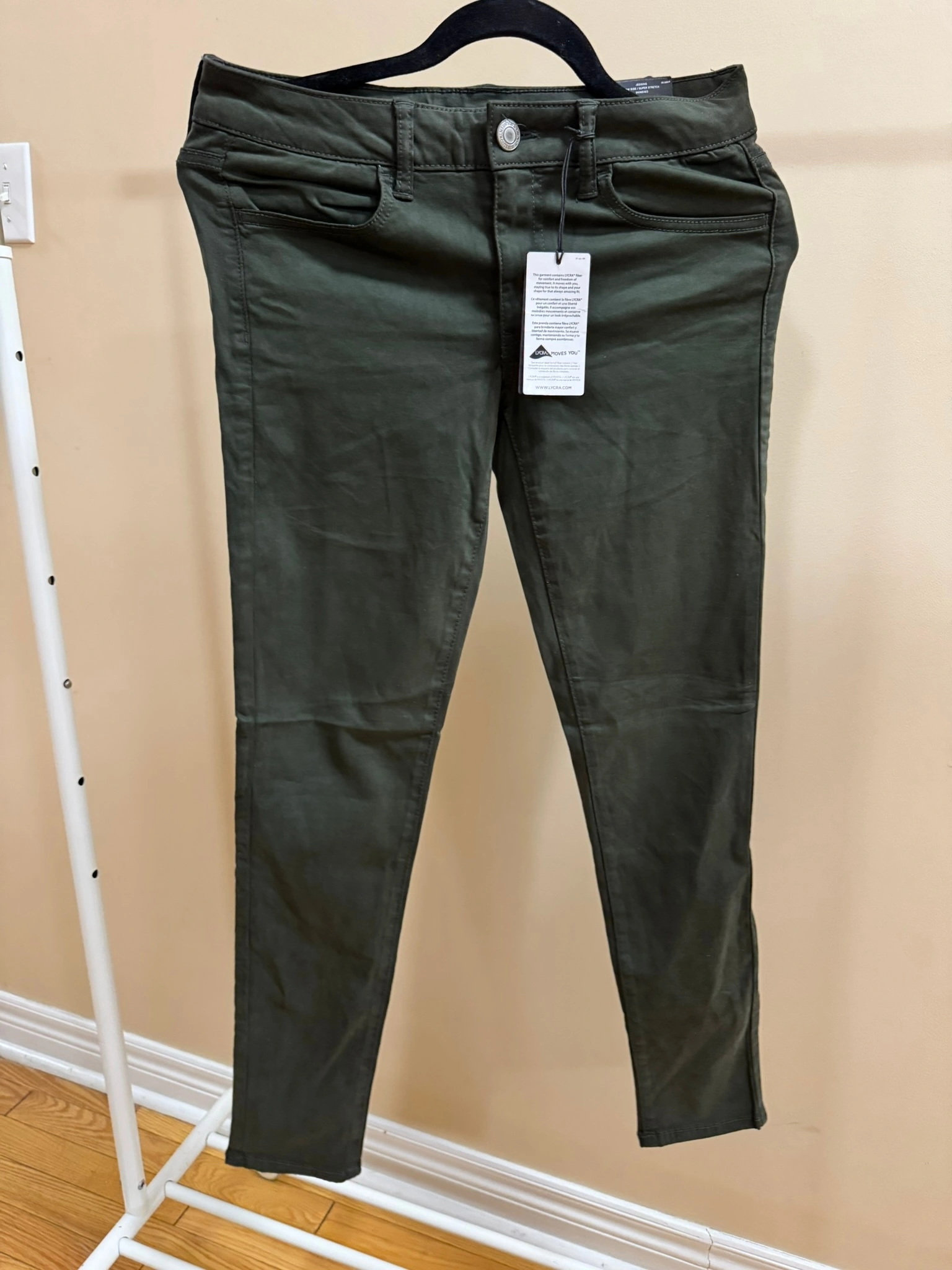 American Eagle Sateen X Jegging Size: 6 Regular (low rise) Color: Green Super Stretch fabric for a comfortable fit Soft sateen finish with a flattering skinny/jegging cut Gently worn, in excellent condition $40 OBO We can arrange for a pick-up from Buy and Sell Safe Exchange Zones (ex. 21 Division - near Bramalea City Centre in Brampton).