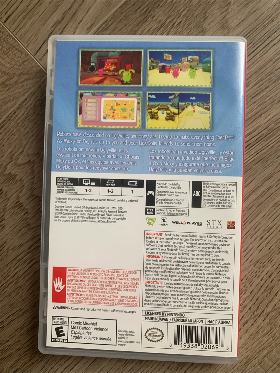 Selling UglyDolls: An Imperfect Adventure for the Nintendo Switch. It's rated E for Everyone, so it's great for all ages. Get ready for some comic mischief and mild cartoon violence as you help Moxy and Ox save Uglyville! ( open for test only )