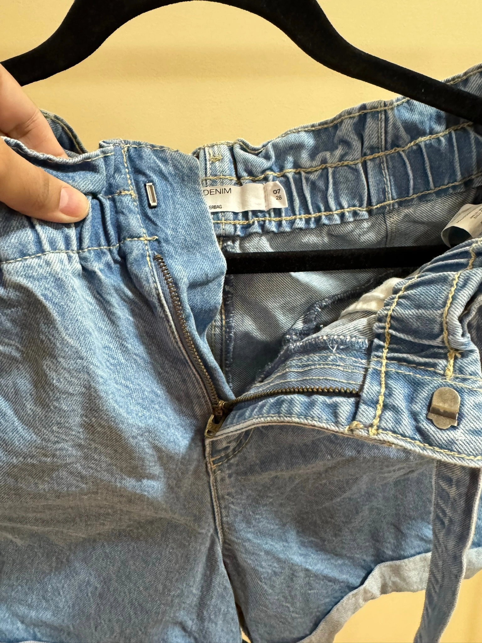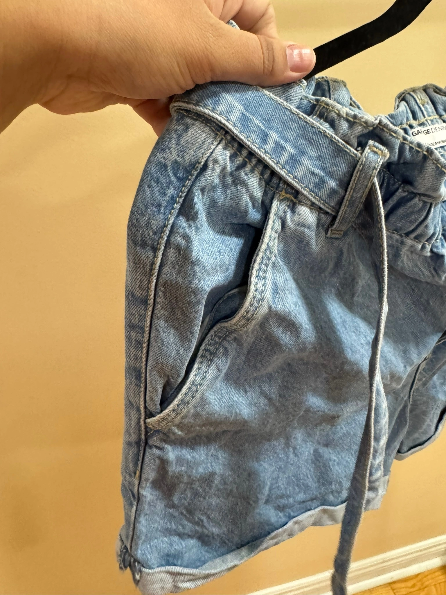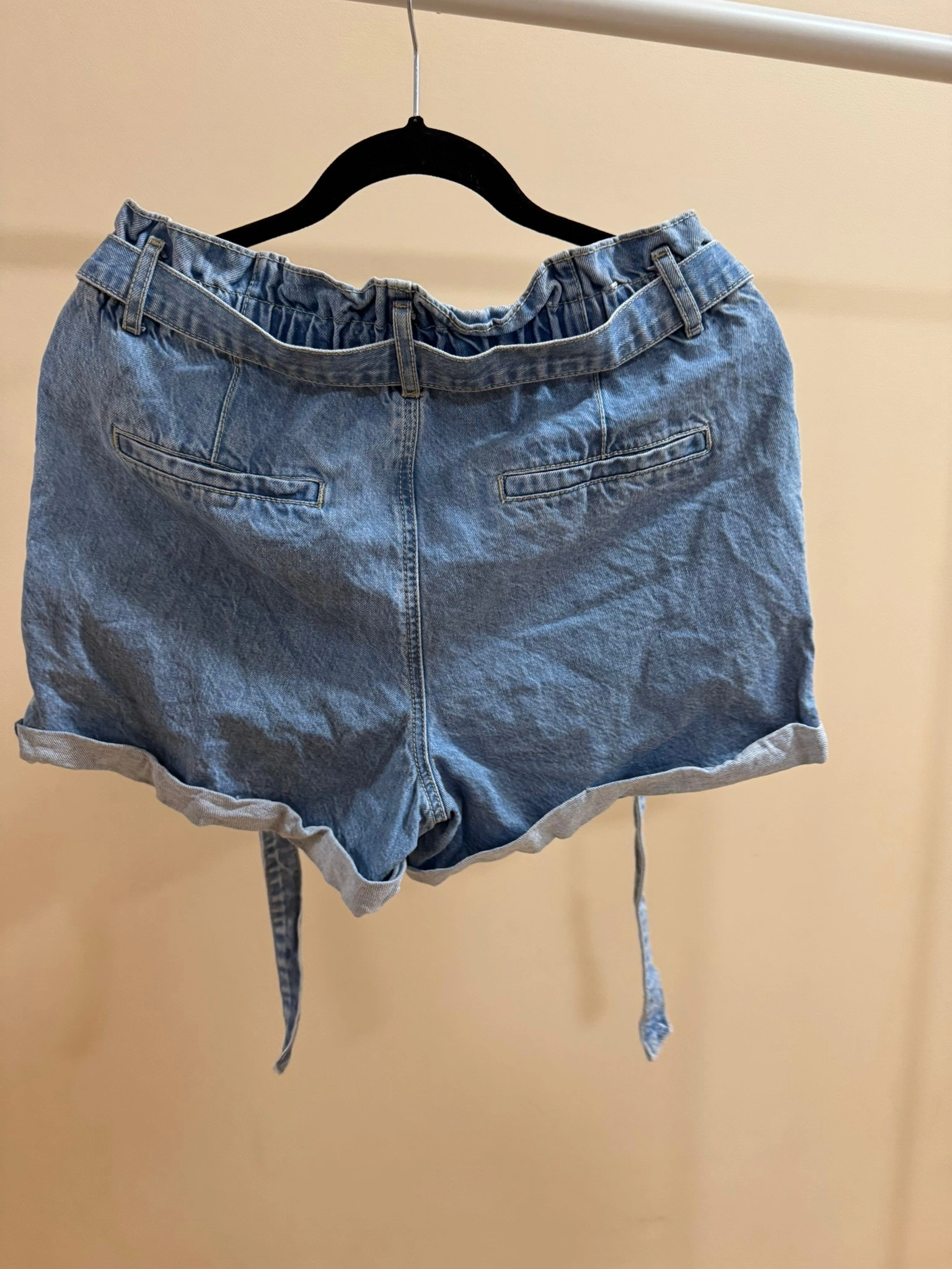 Trendy high-waisted denim shorts from Garage with cute paperbag waist design and tie belt. Features a relaxed fit with rolled cuffs for a casual, comfortable style. Perfect for summer days or casual outings. $25 OBO We can arrange for a pick-up from Buy and Sell Safe Exchange Zones (ex. 21 Division - near Bramalea City Centre in Brampton).