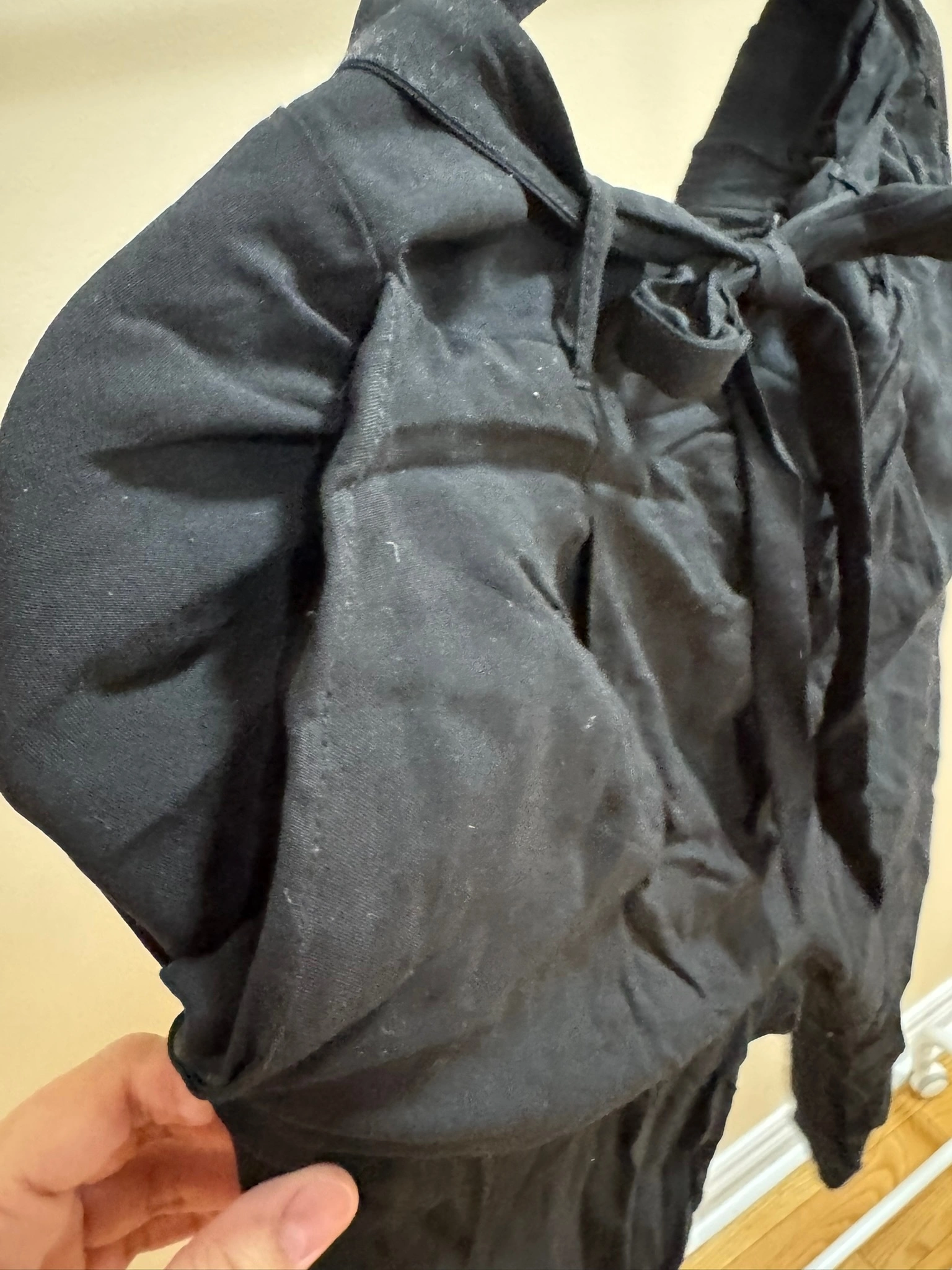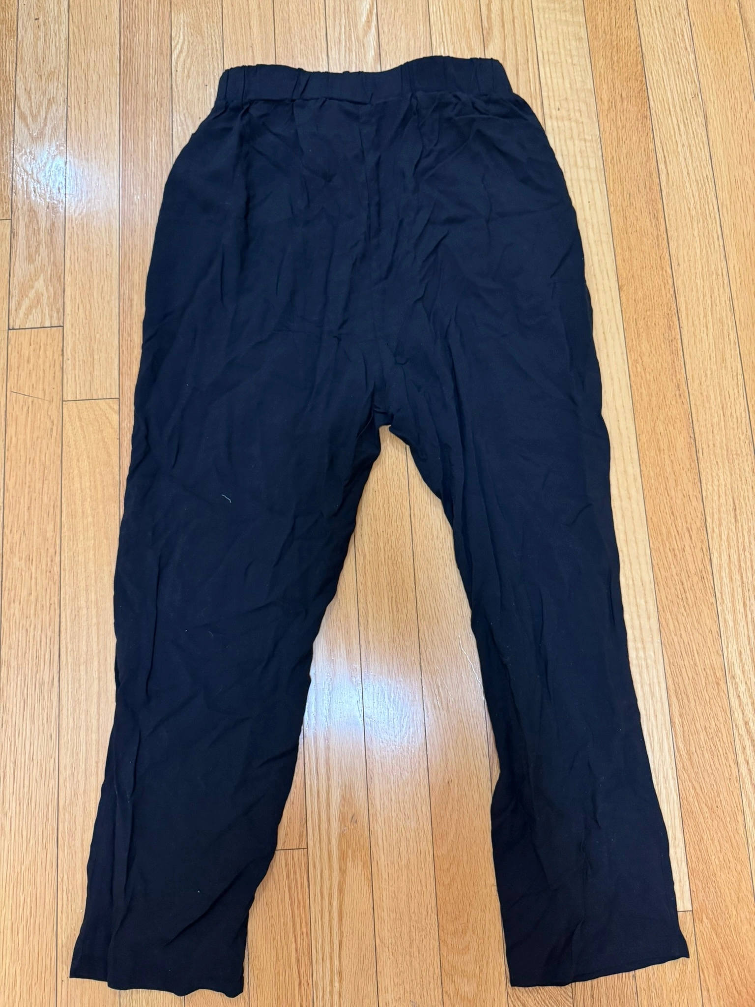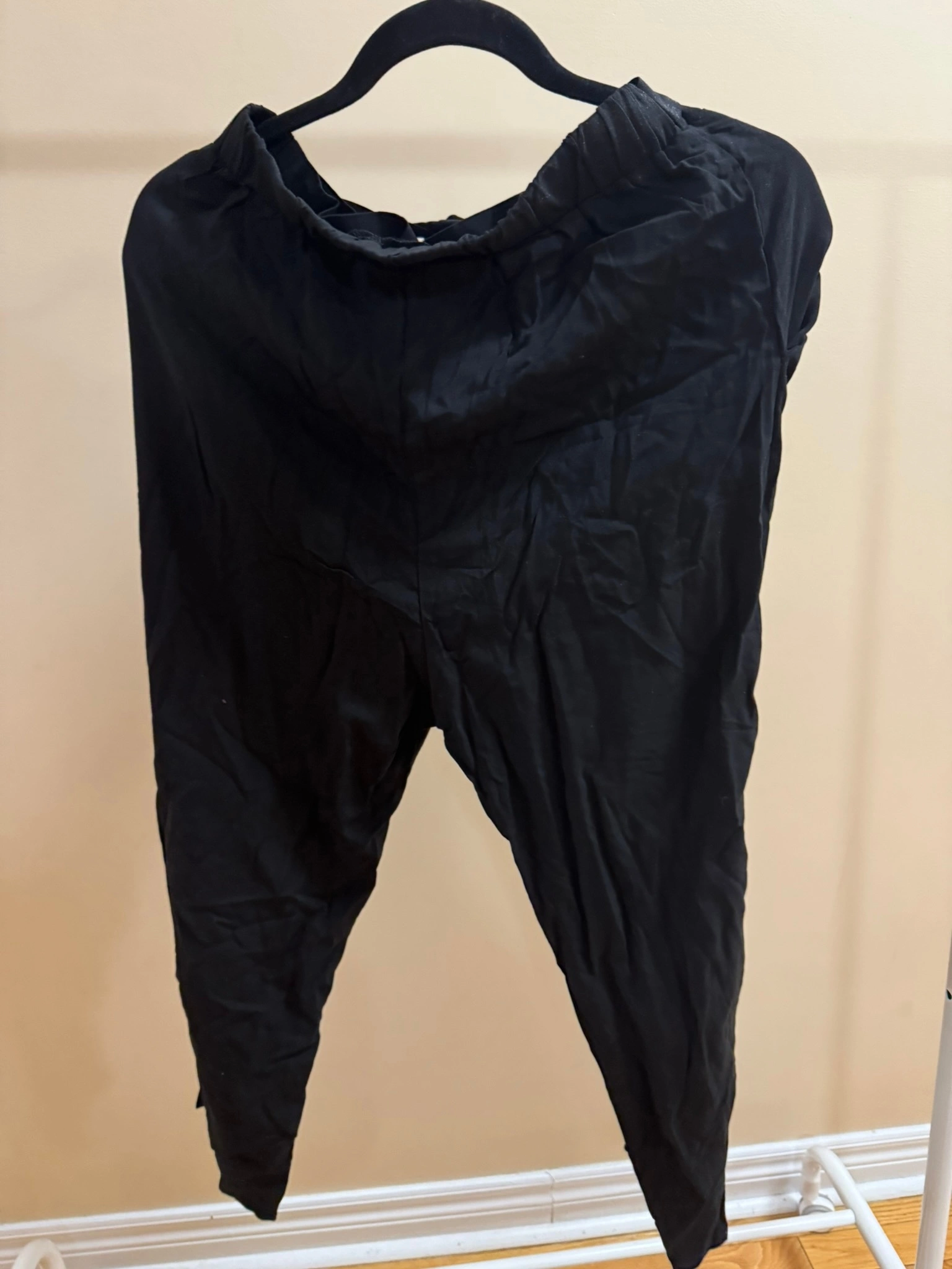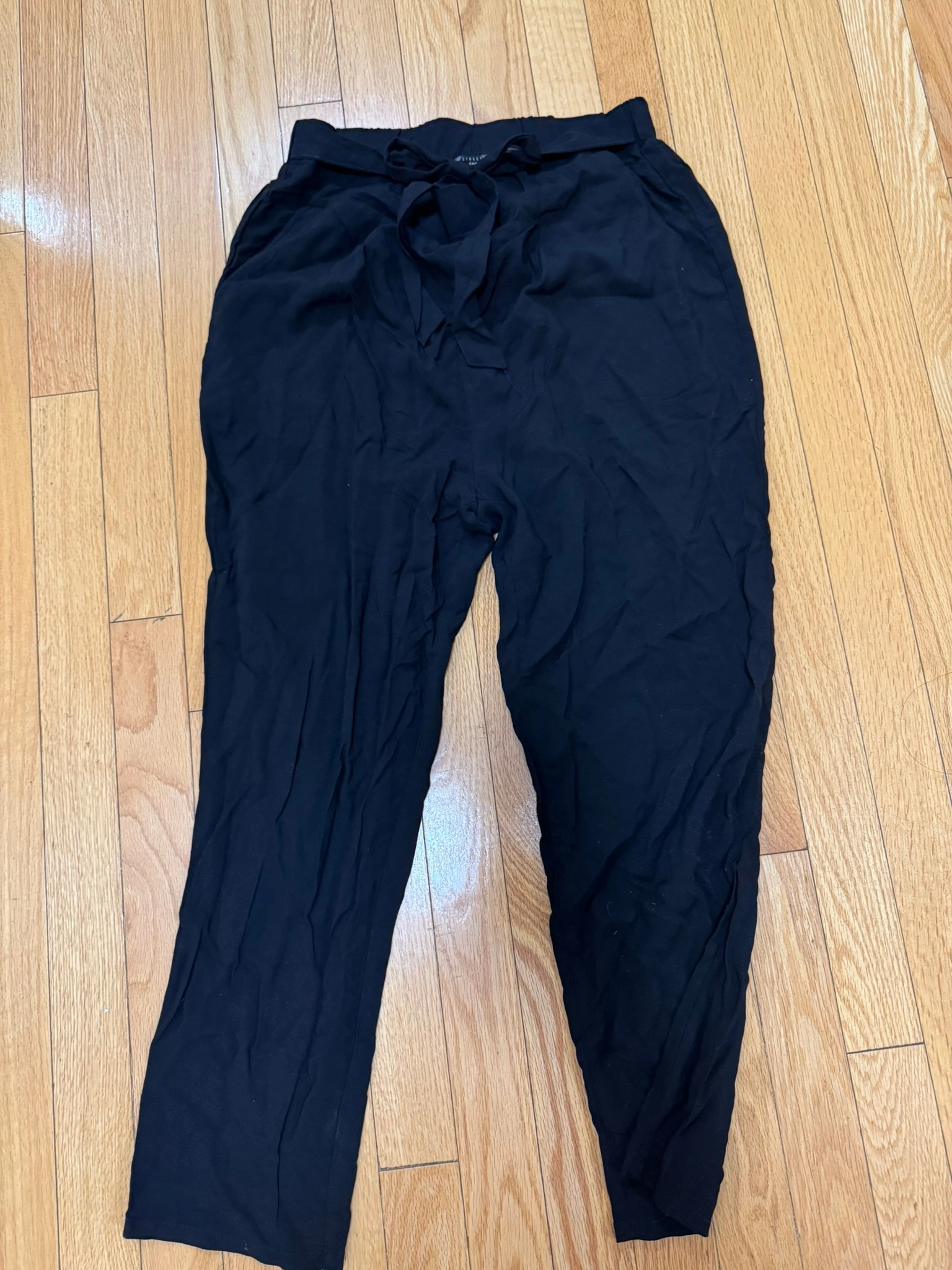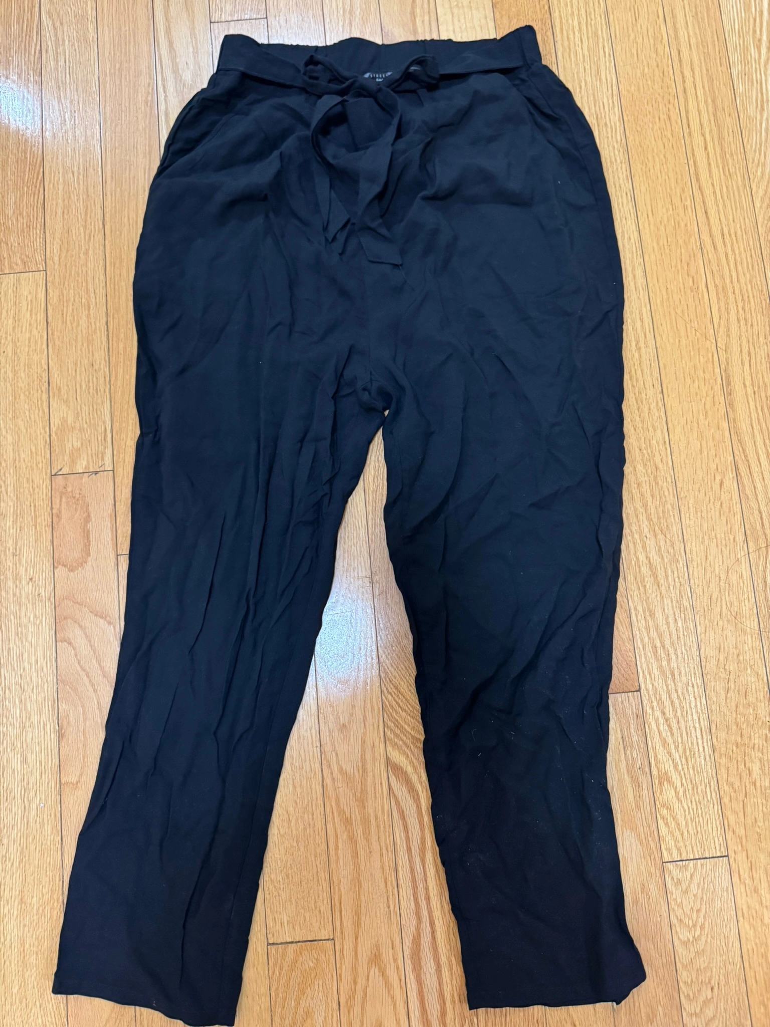 New with tags! These trendy paperbag-style pants feature a high-waisted design with a tie belt at the waist for a flattering silhouette. The relaxed, tapered fit and elastic waistband make them both comfortable and stylish. Perfect for casual outings or dressed up with heels. $14 OBO We can arrange for a pick-up from Buy and Sell Safe Exchange Zones (ex. 21 Division - near Bramalea City Centre in Brampton).