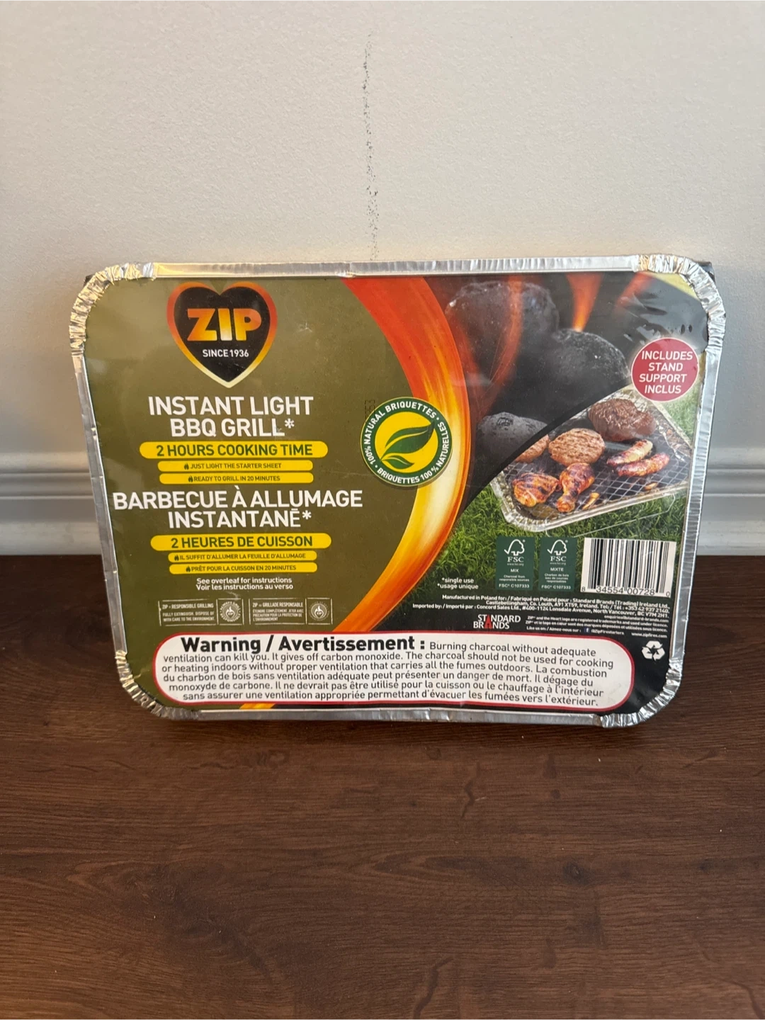 Get ready for a quick and easy BBQ with this ZIP Instant Light BBQ Grill! It includes a stand for support and is ready to grill in just 20 minutes. Enjoy 2 hours of cooking time with natural briquettes. Perfect for a spontaneous cookout!