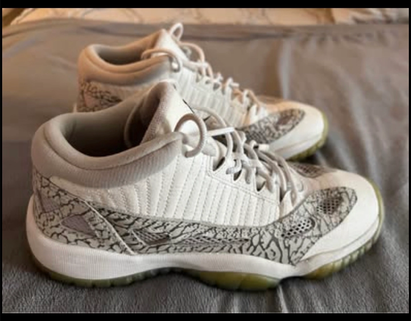 Selling a pair of Jordan 11 Retro Low sneakers in the White Cement colourway. These are in great shape and ready for a new home! The iconic elephant print detailing makes these a real standout. Only worn a handful of times for leisure. Size 7Y or 8-8.5 women’s.